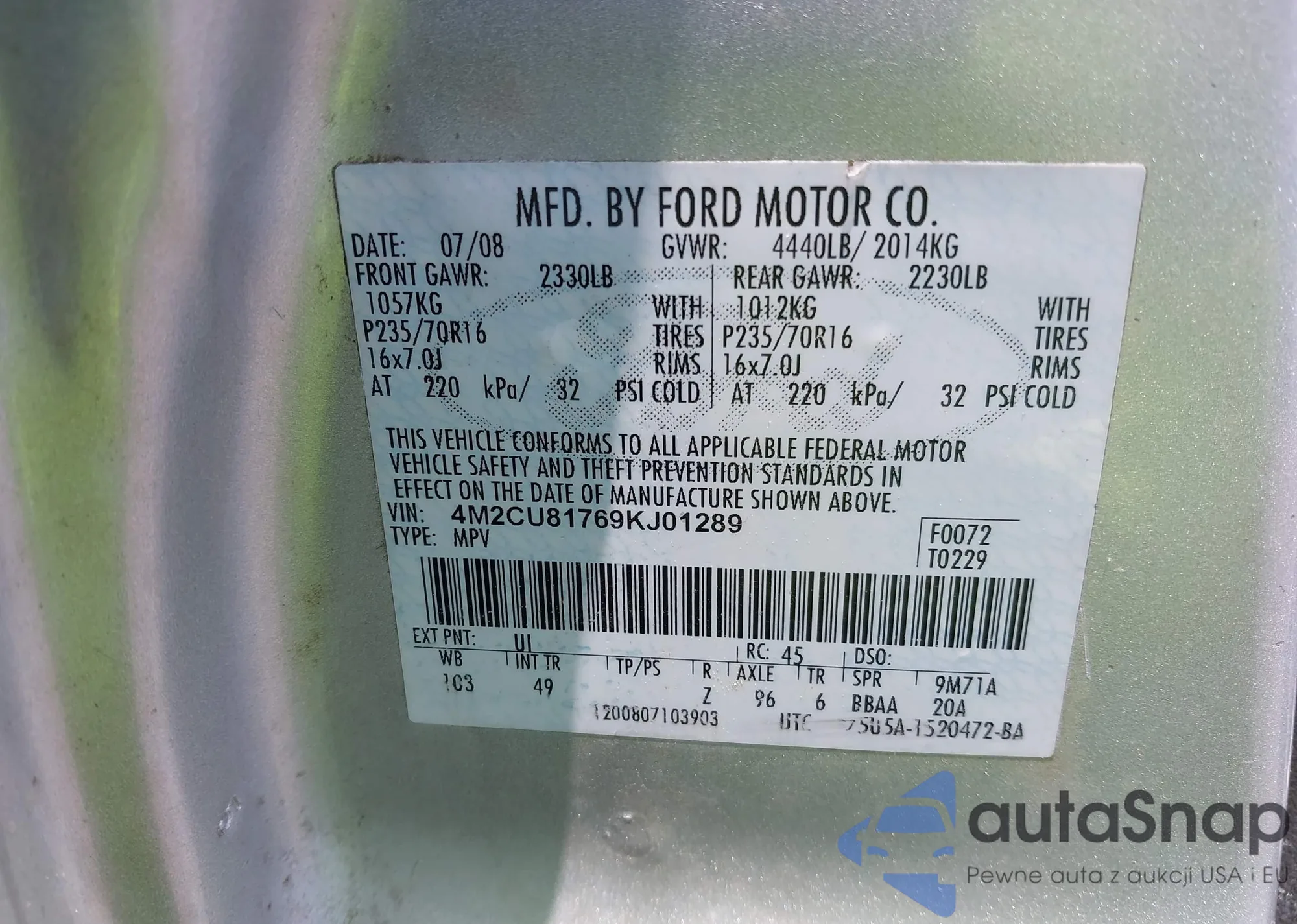LOT: 42190071 VIN: 4M2CU81769KJ01289