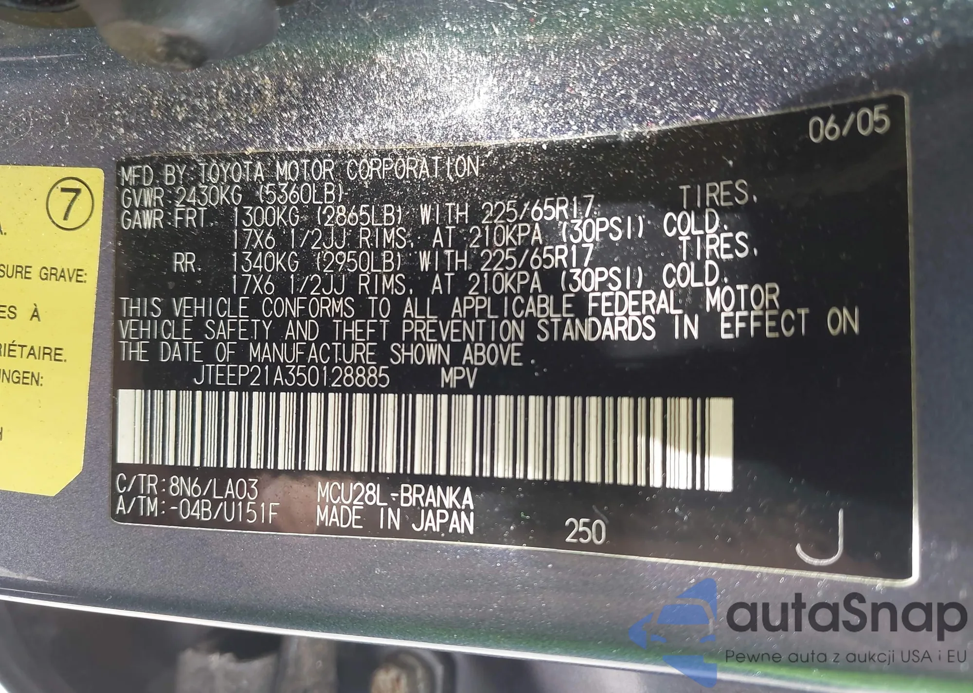 • VIN JTEEP21A350128885