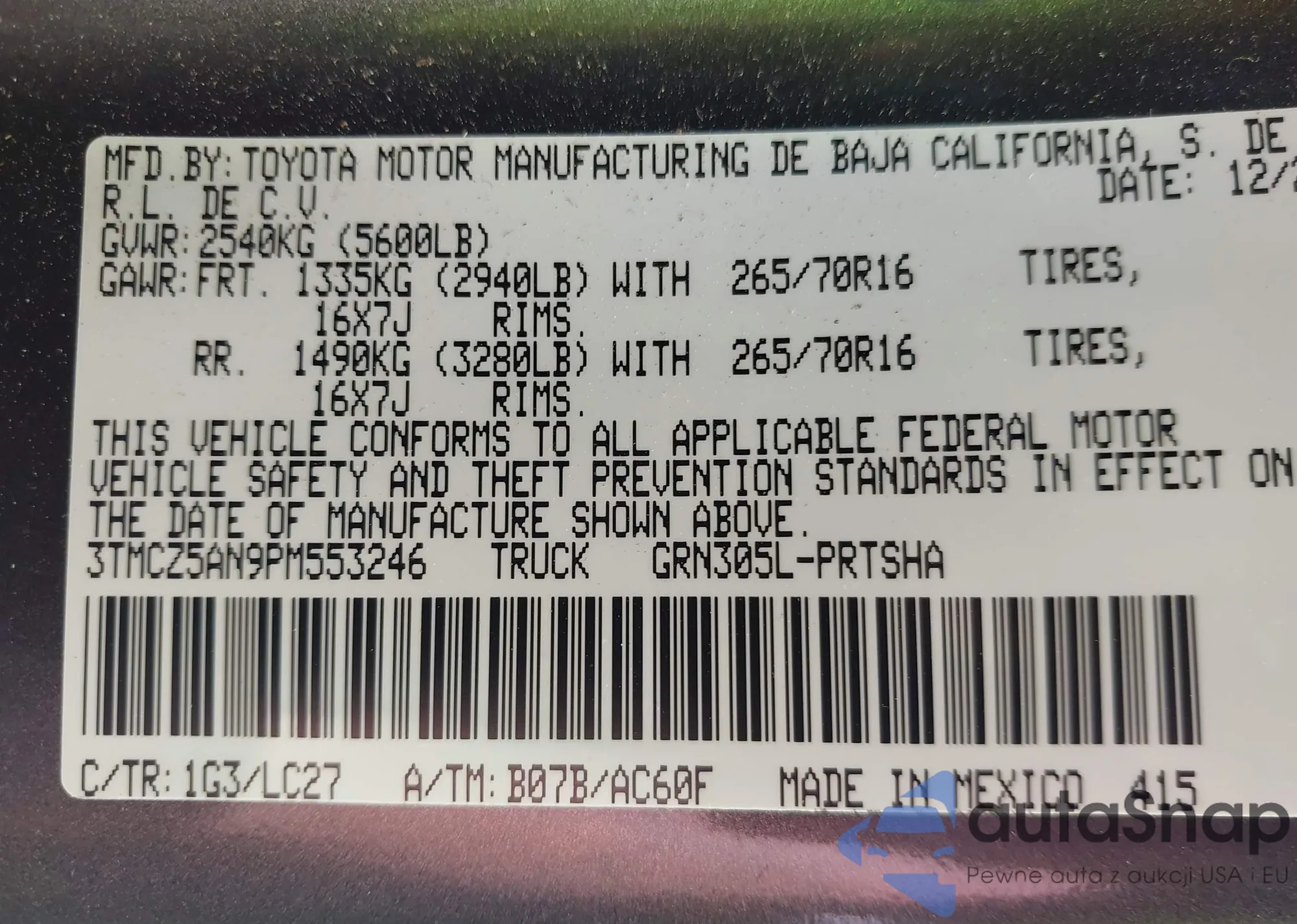 • VIN 3TMCZ5AN9PM553246