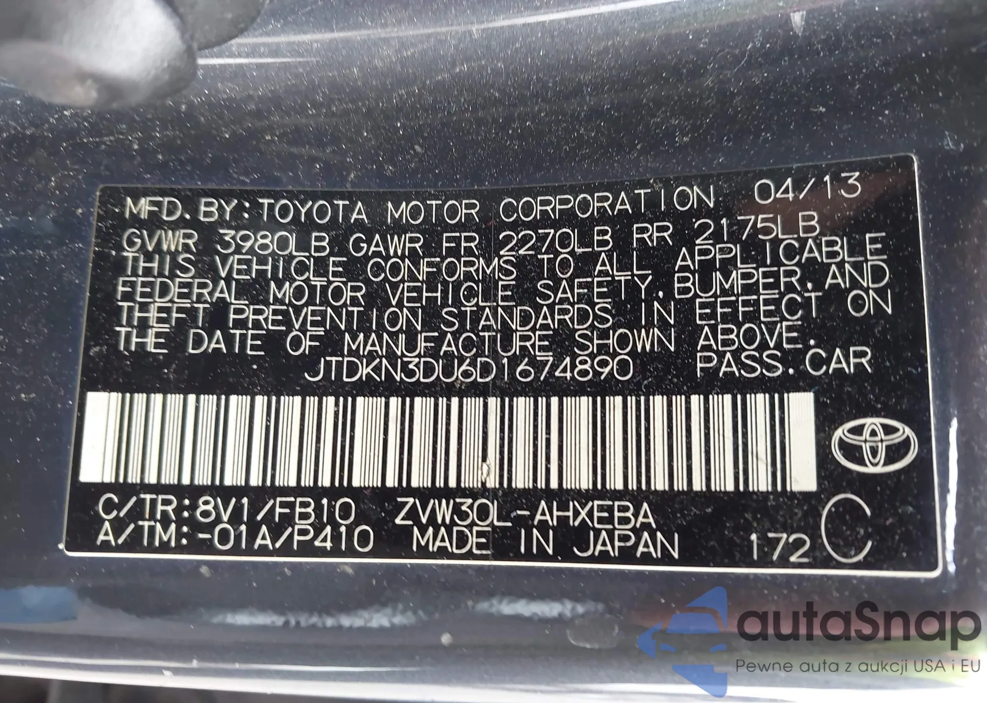 • VIN JTDKN3DU6D1674890