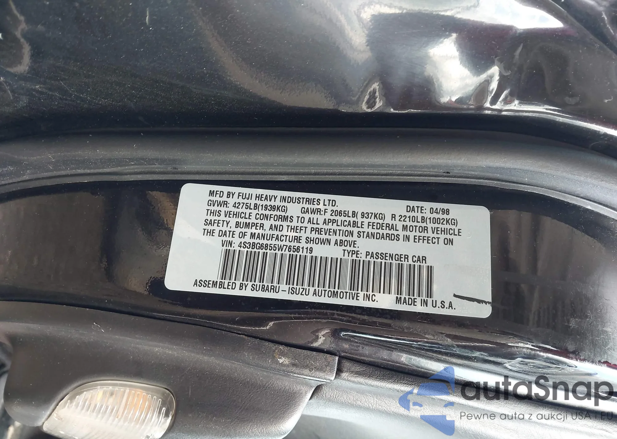 • VIN 4S3BG6855W7656119