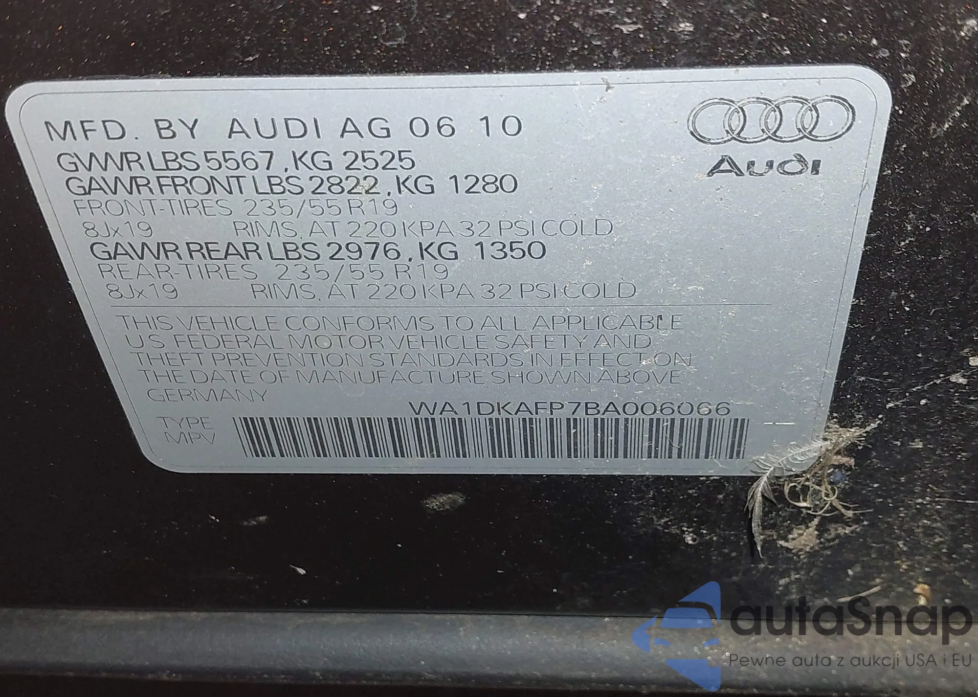 LOT: 42560657 VIN: WA1DKAFP7BA006066
