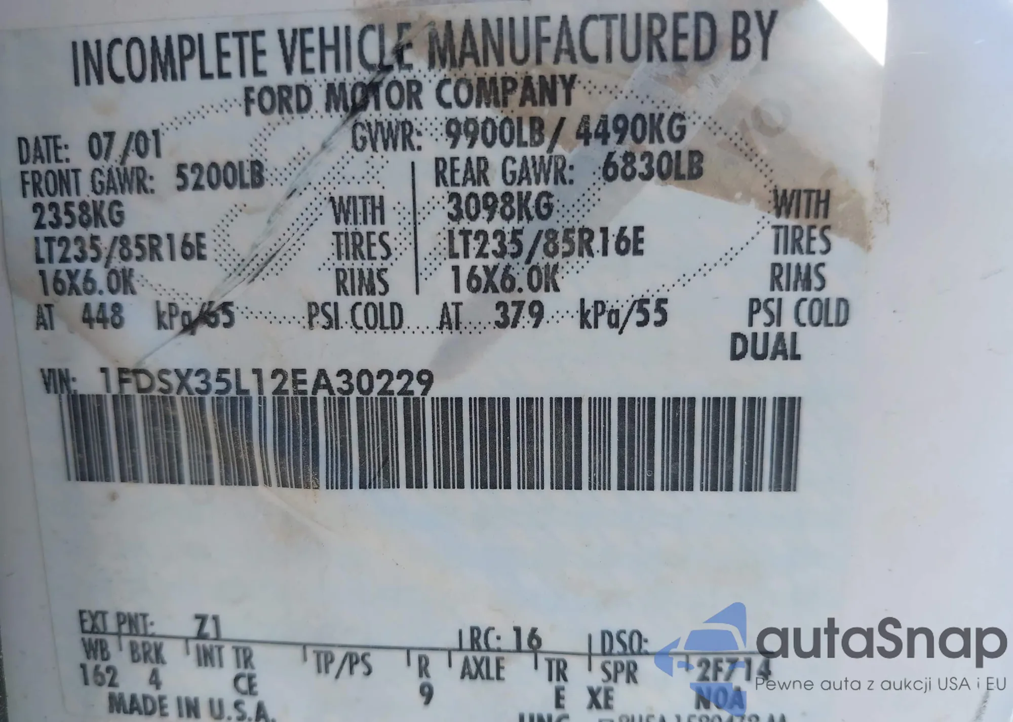 • VIN 1FDSX35L12EA30229