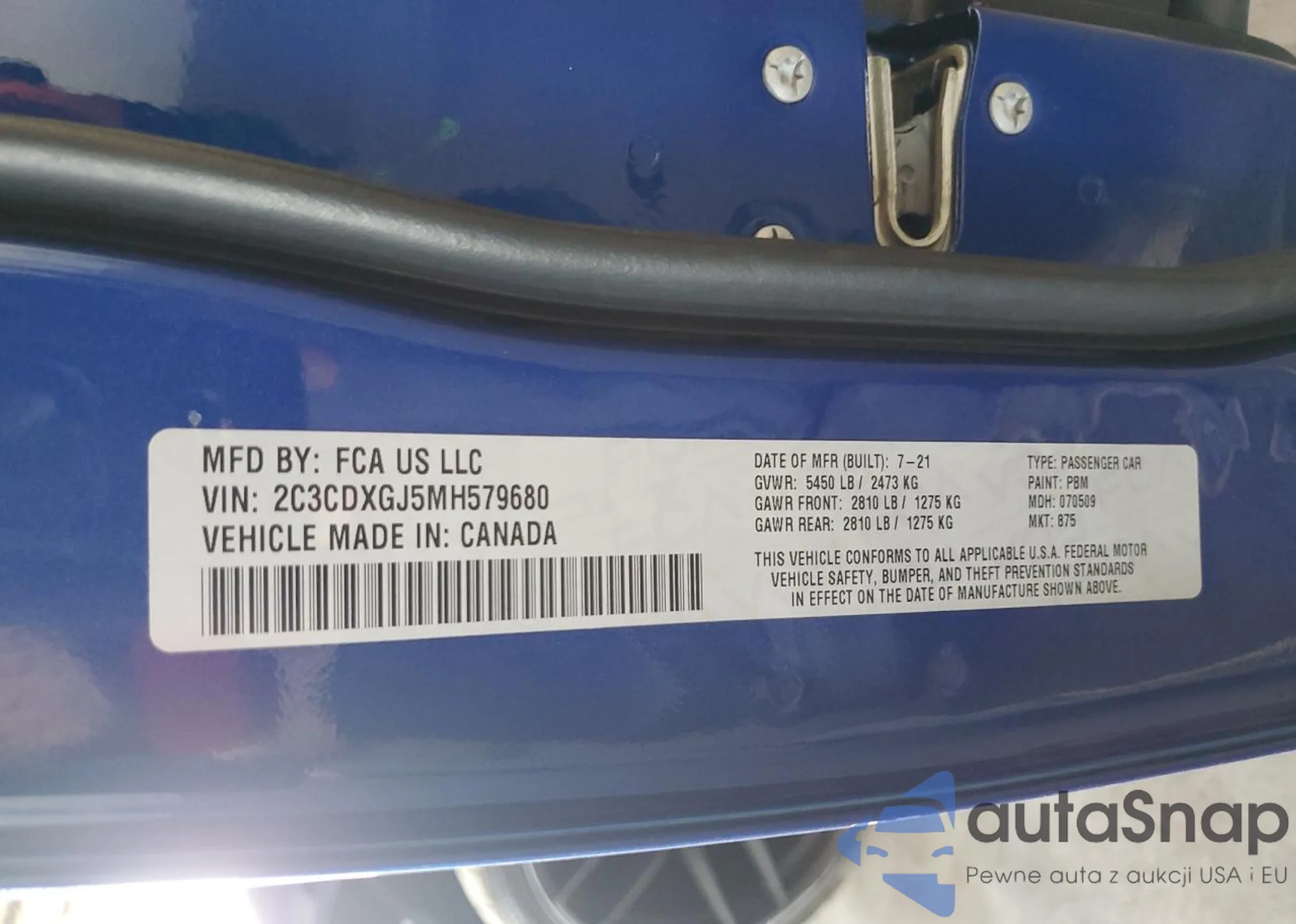 • VIN 2C3CDXGJ5MH579680