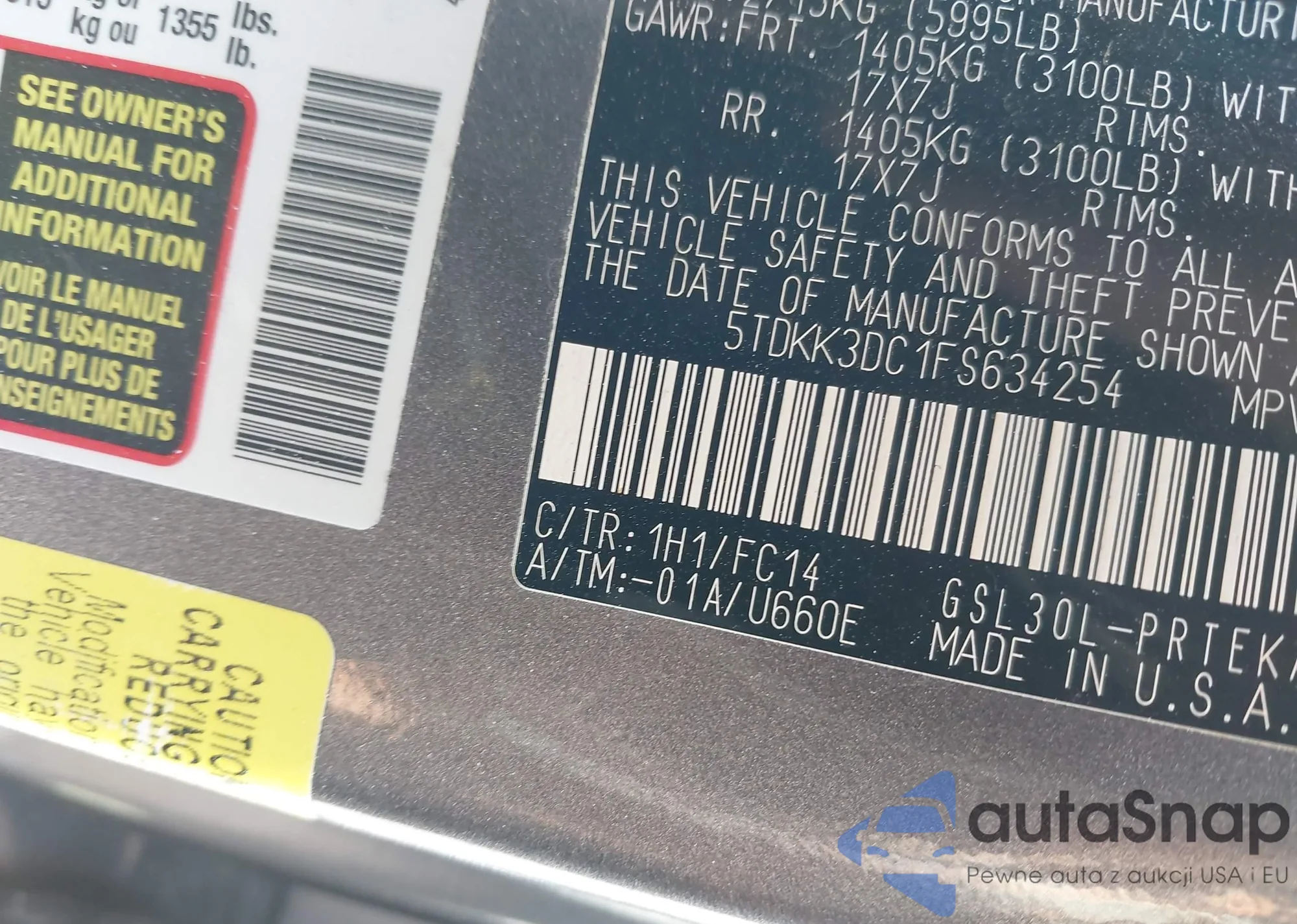 LOT: 41998016 VIN: 5TDKK3DC1FS634254