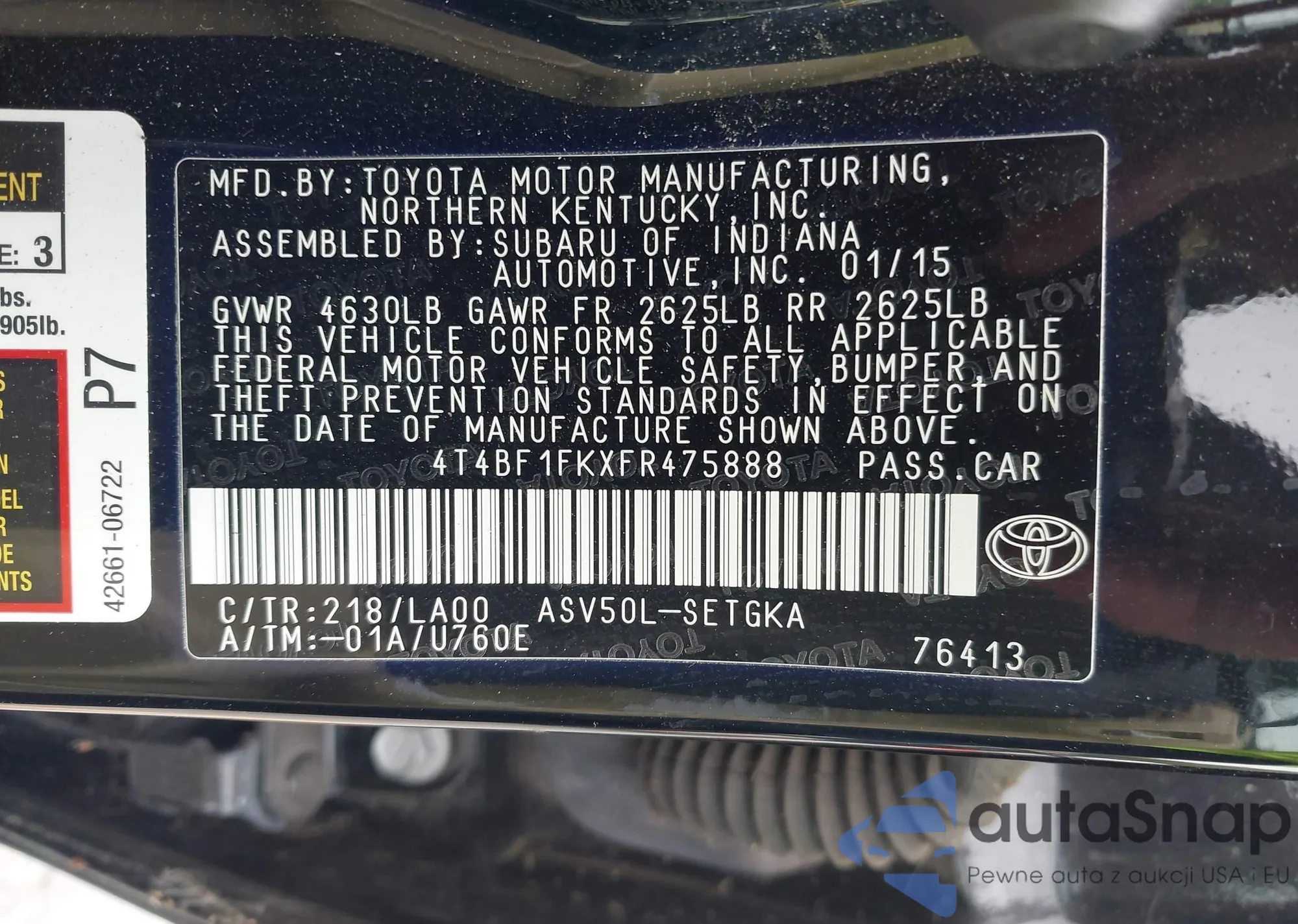 • VIN 4T4BF1FKXFR475888