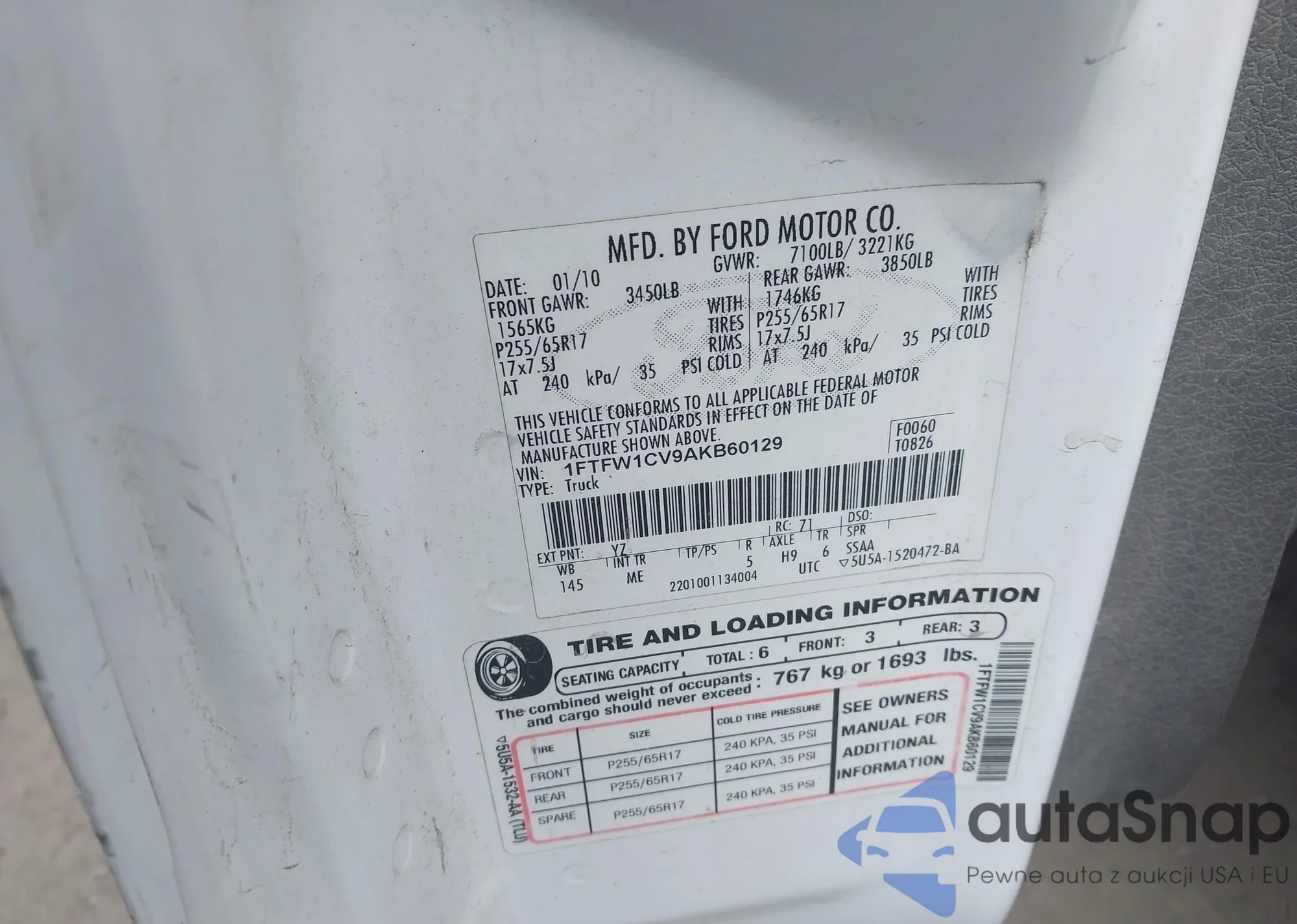 • VIN 1FTFW1CV9AKB60129