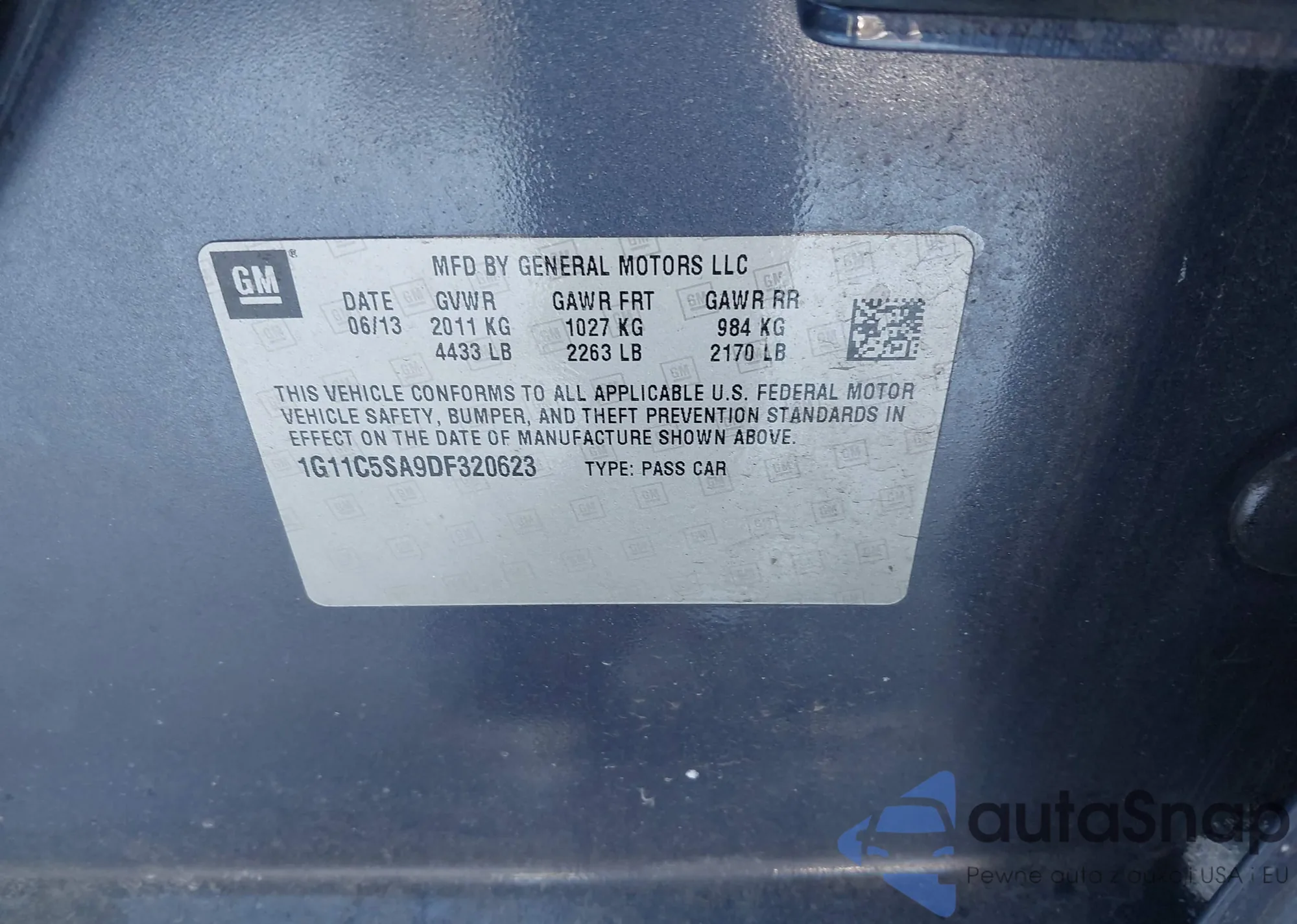 LOT: 41554211 VIN: 1G11C5SA9DF320623
