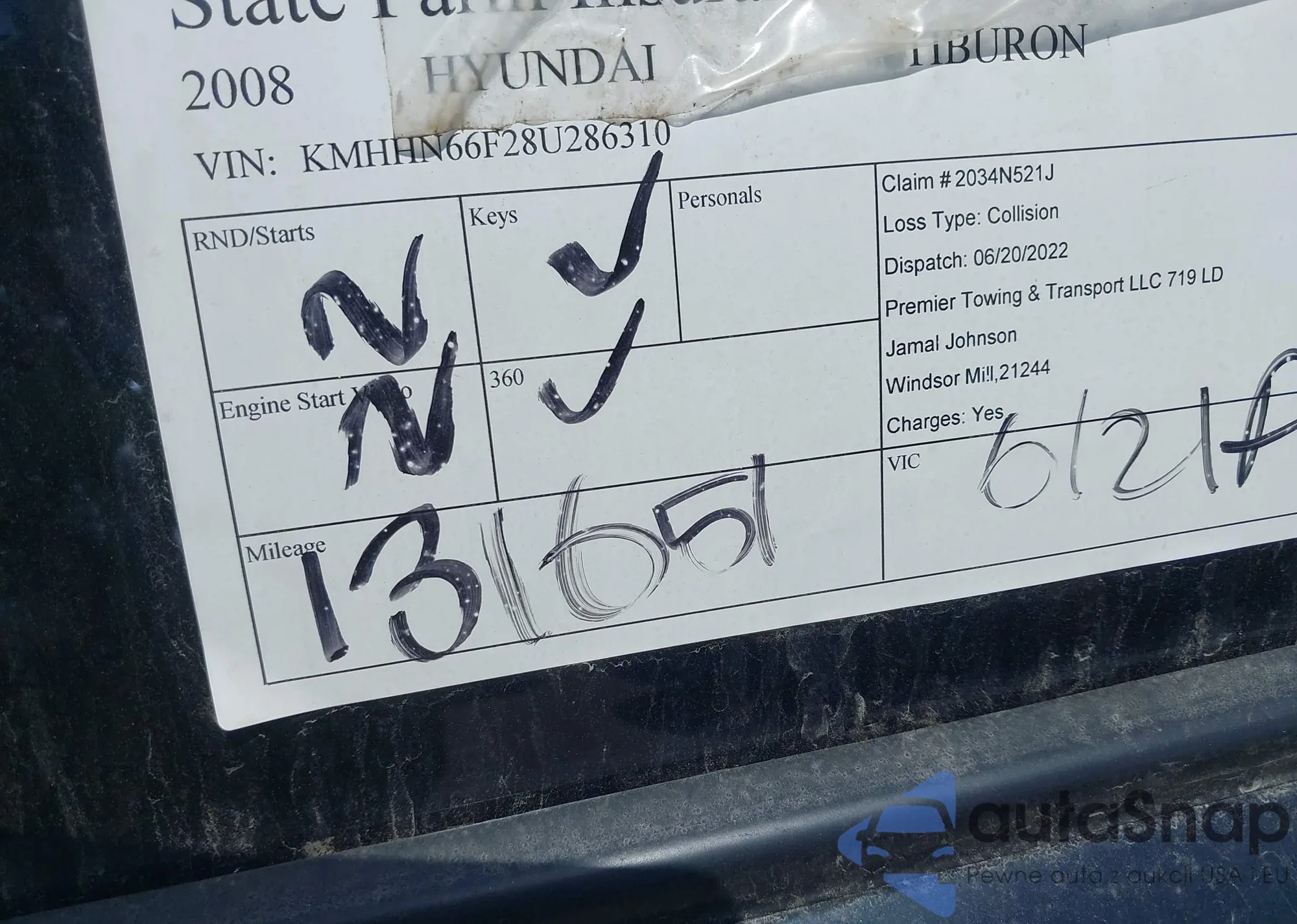 LOT: 39303200 VIN: KMHHN66F28U286310