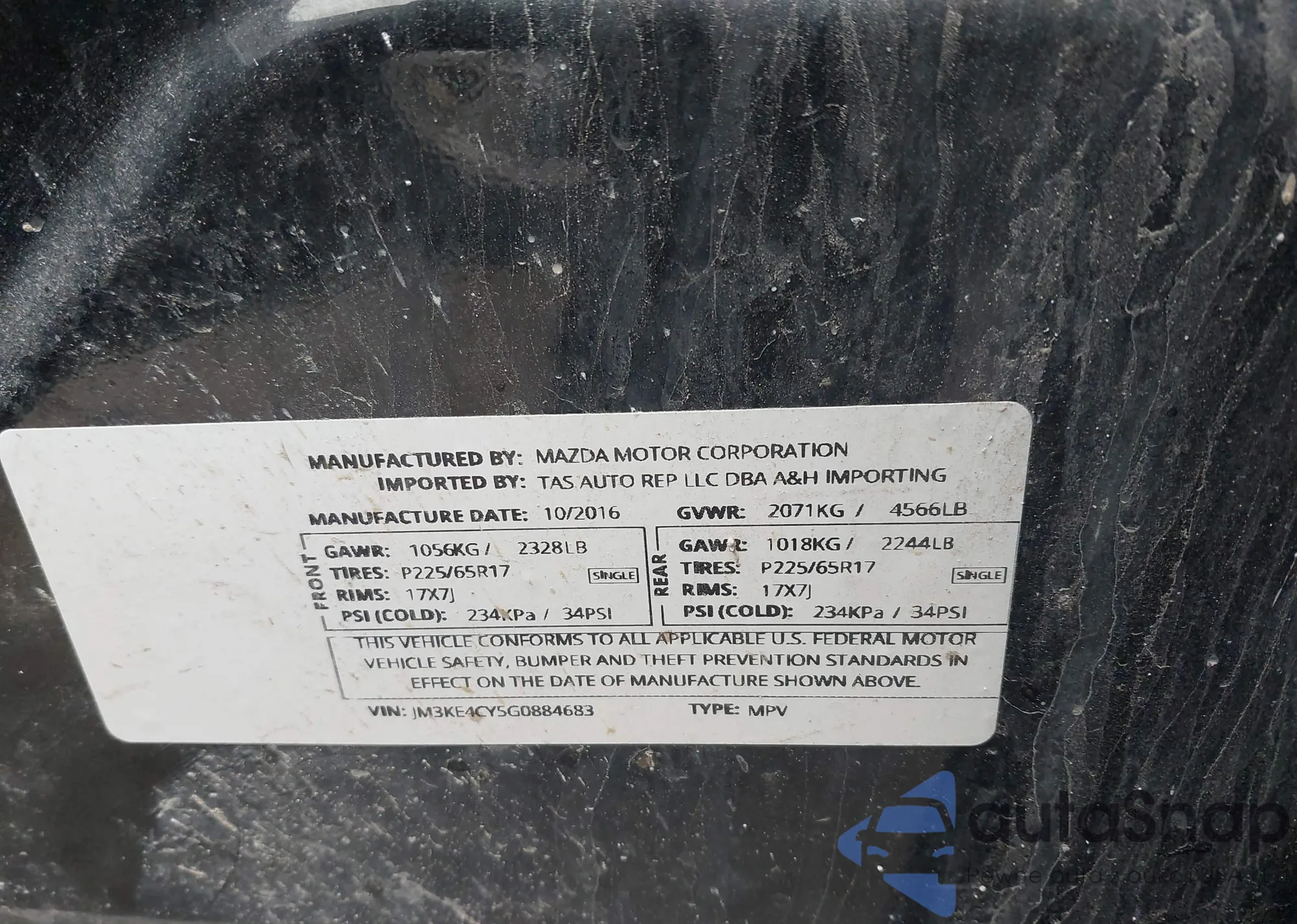 LOT: 42358437 VIN: JM3KE4CY5G0884683