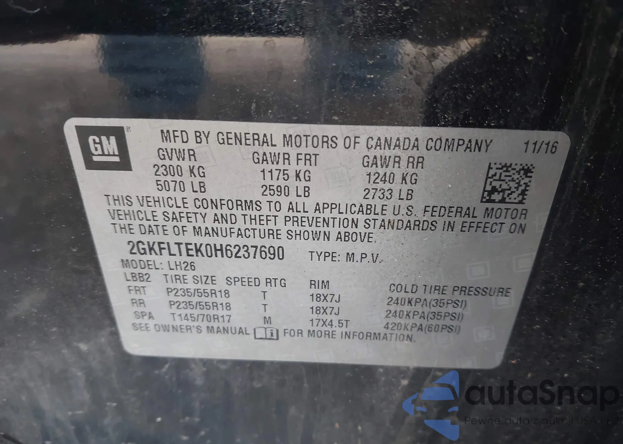• VIN 2GKFLTEK0H6237690