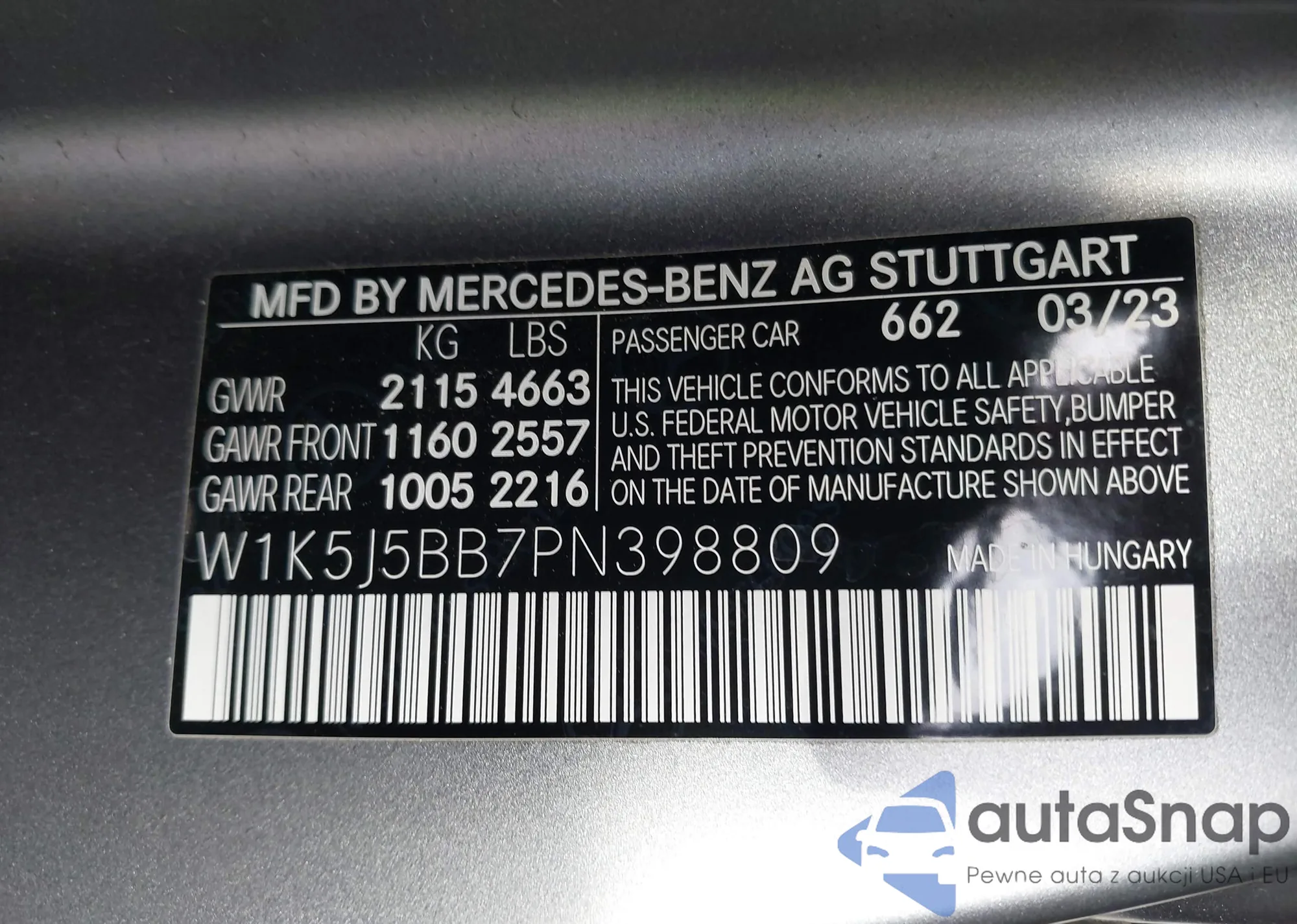 • VIN W1K5J5BB7PN398809