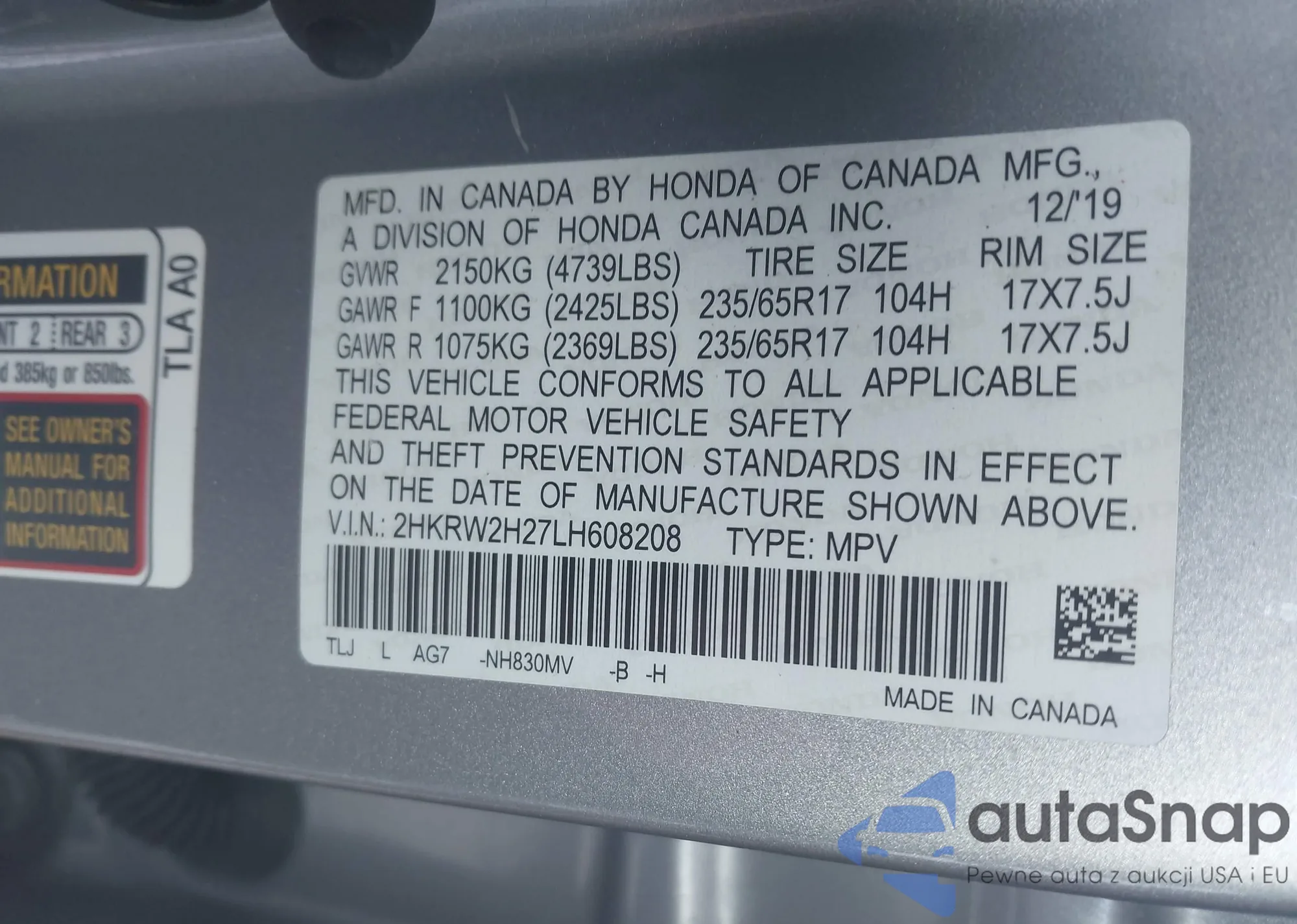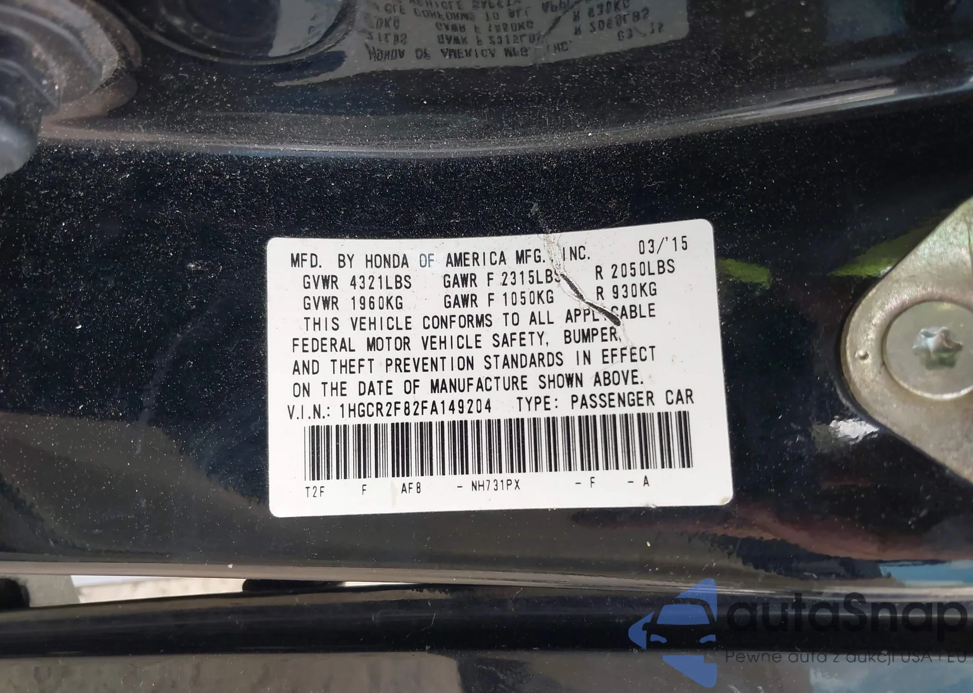 • VIN 1HGCR2F82FA149204