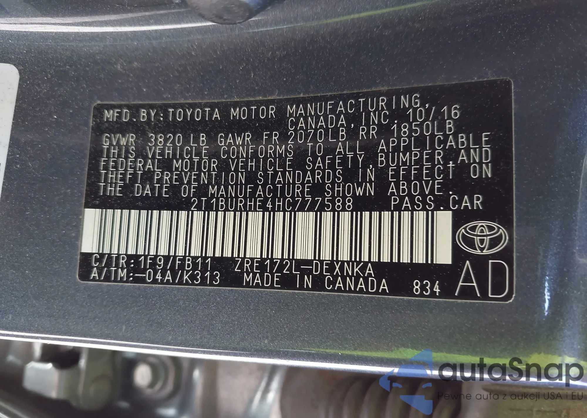 • VIN 2T1BURHE4HC777588