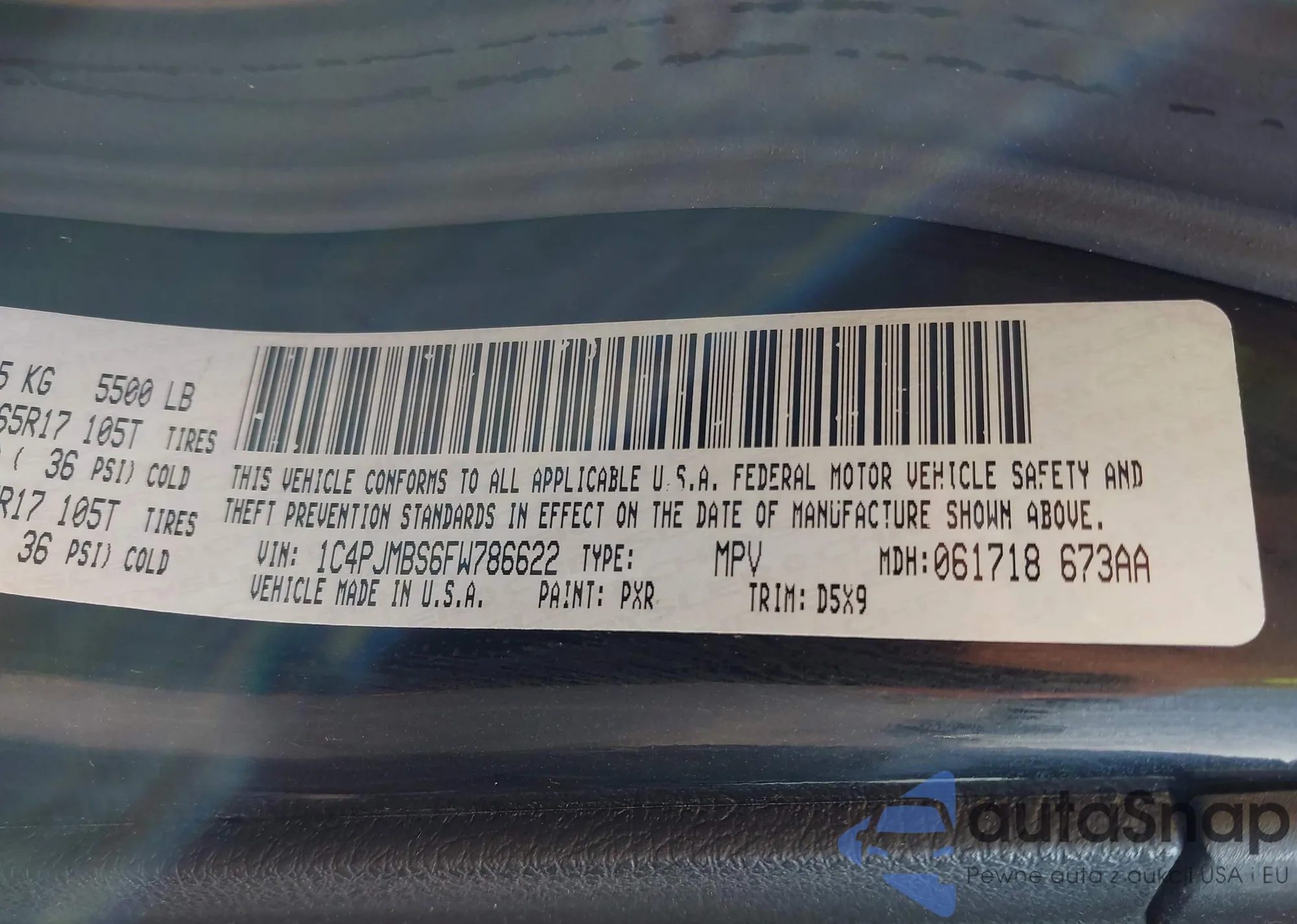 • VIN 1C4PJMBS6FW786622