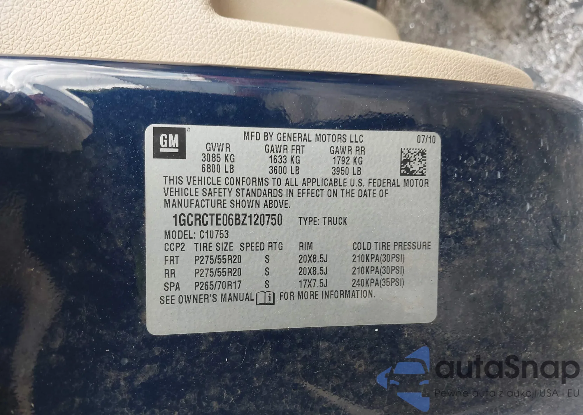 • VIN 1GCRCTE06BZ120750