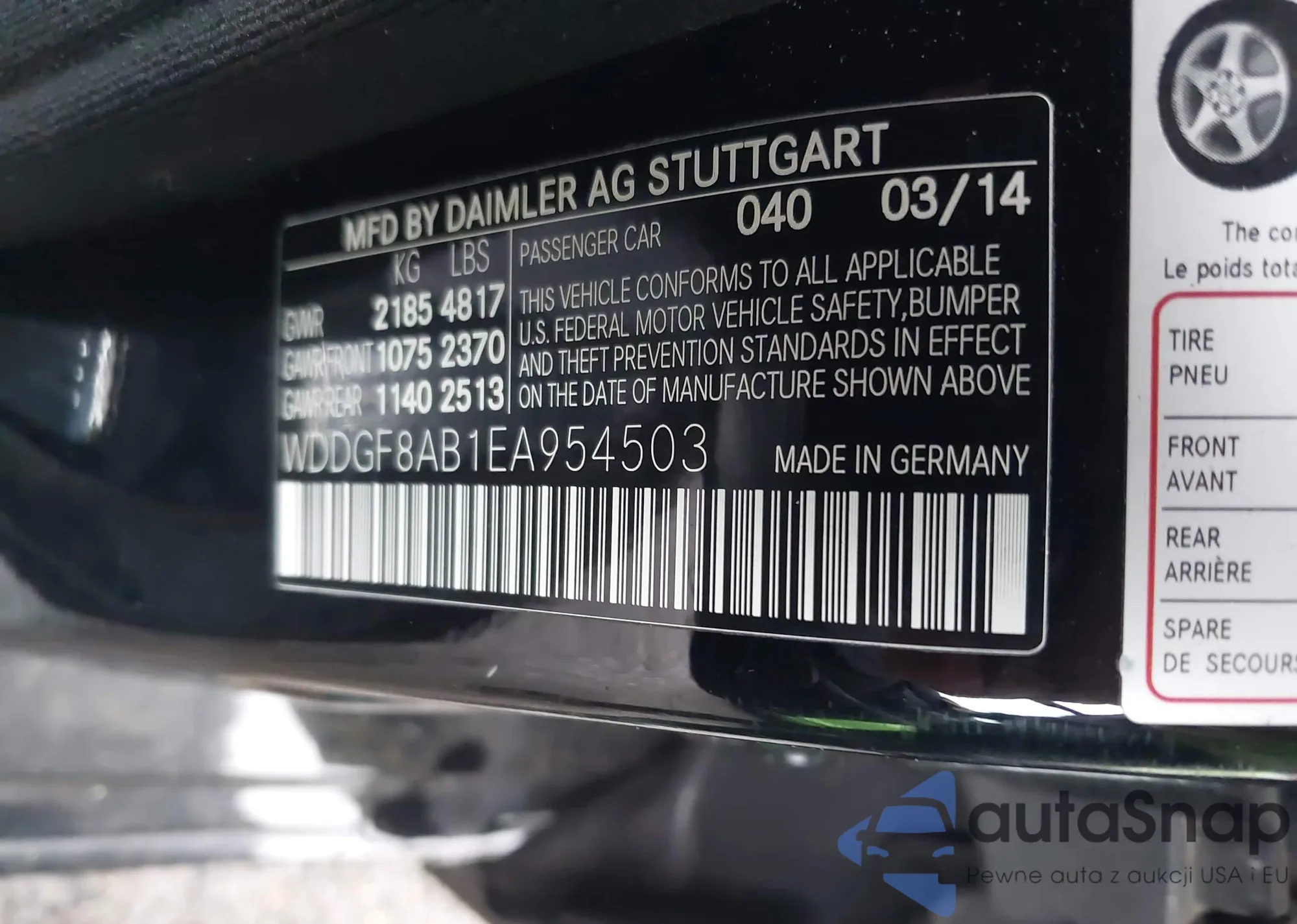 • VIN WDDGF8AB1EA954503