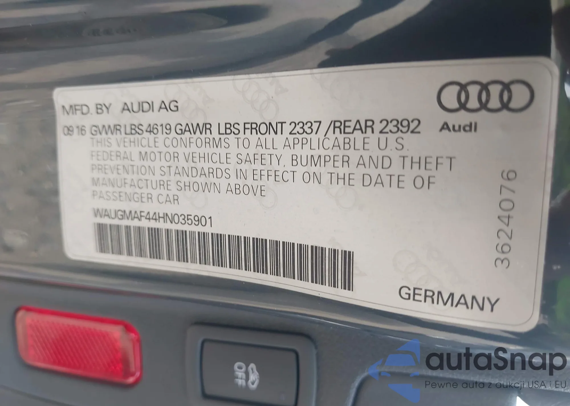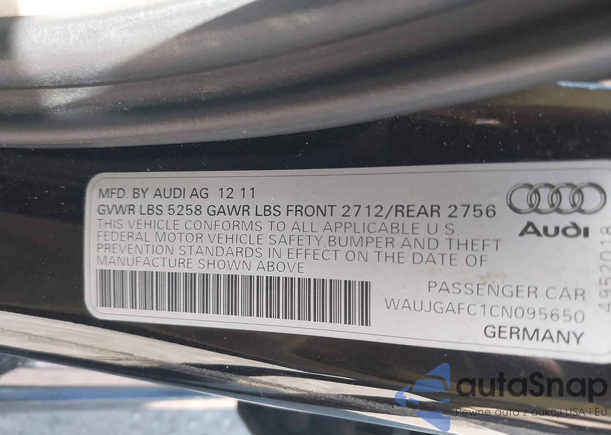 • VIN WAUJGAFC1CN095650