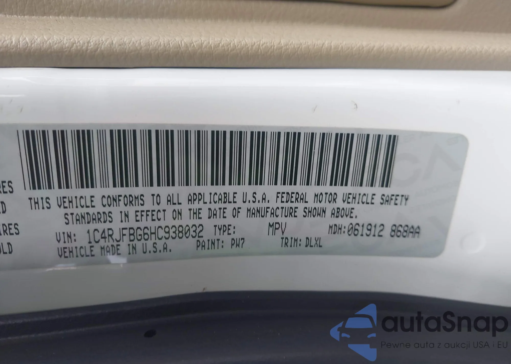• VIN 1C4RJFBG1JC478834