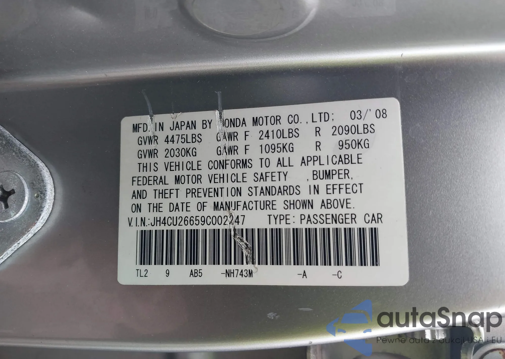 • VIN JH4CU26659C002247
