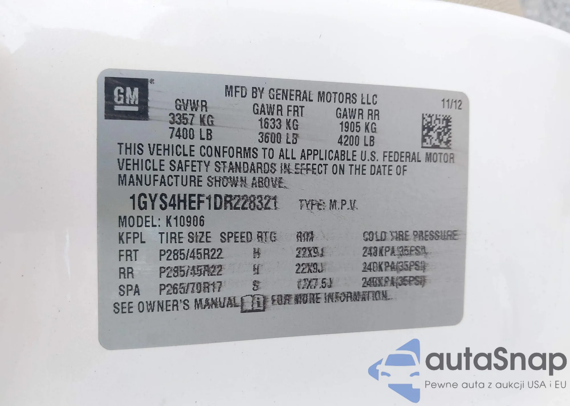 • VIN 1GYS4HEF1DR228321