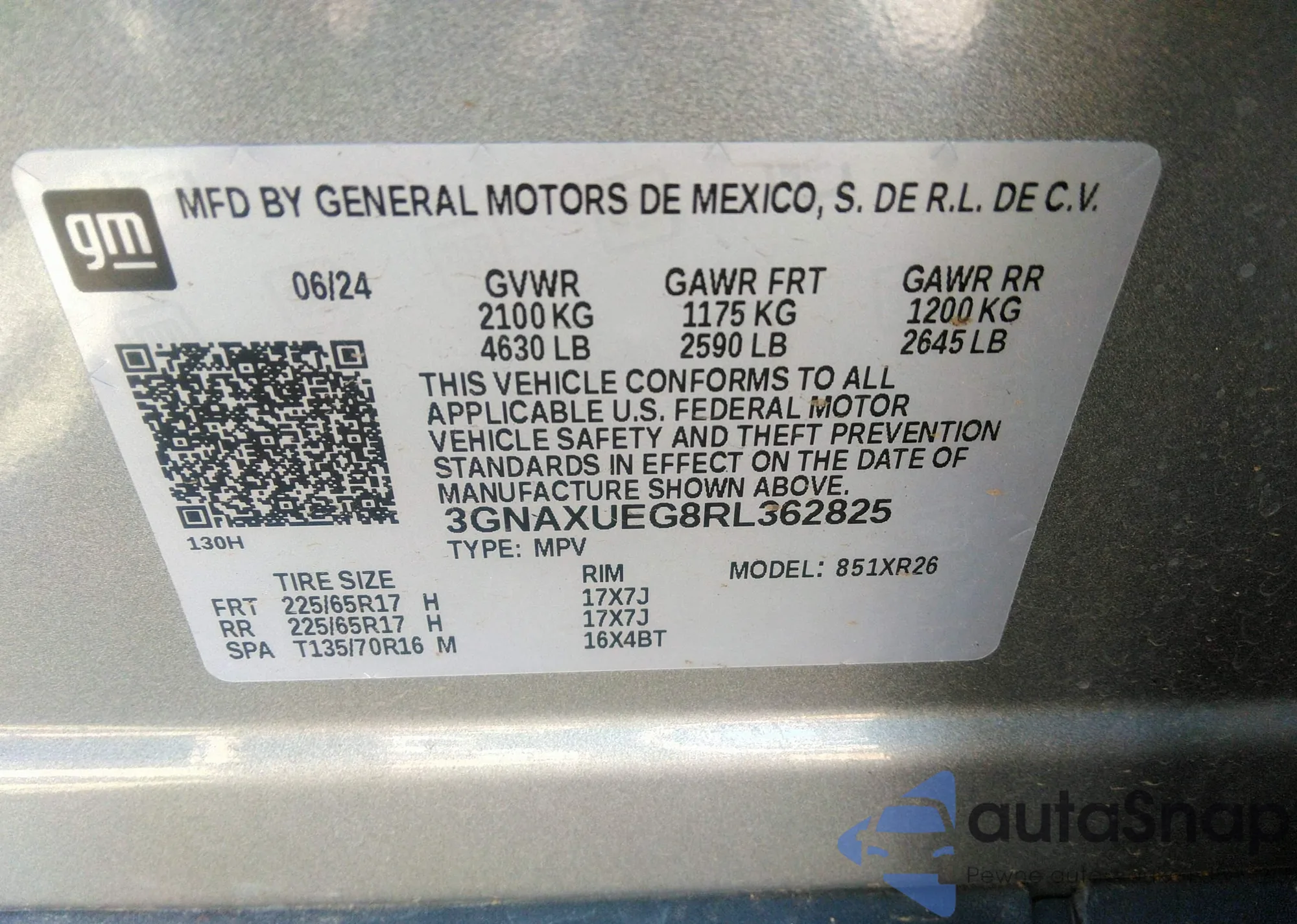 • VIN 3GNAXUEG8RL362825