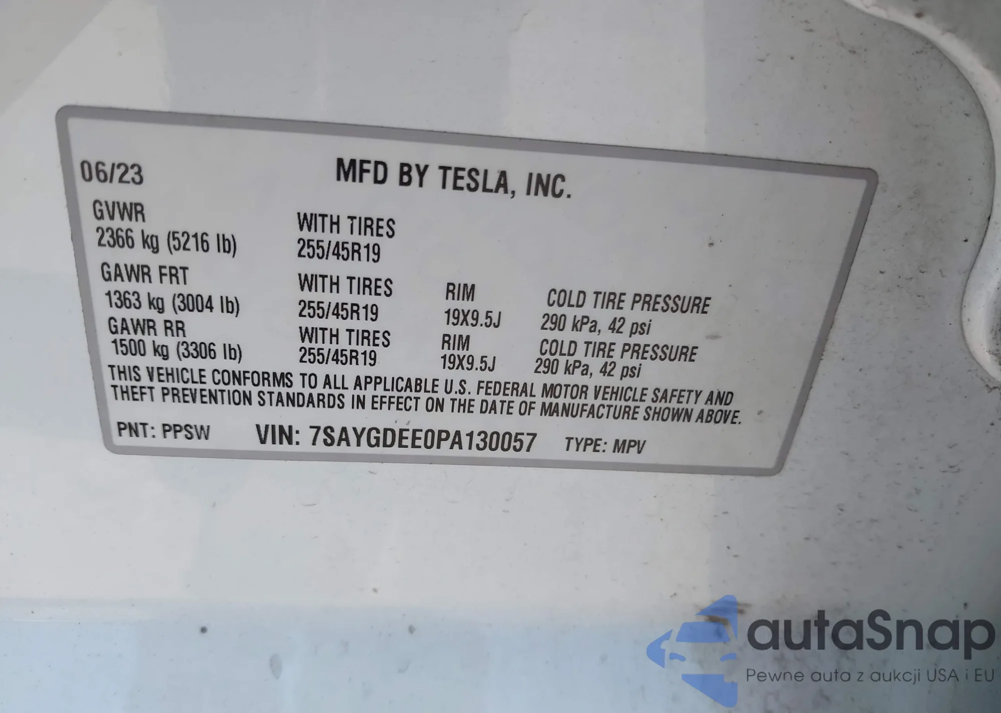 • VIN 7SAYGDEE0PA130057