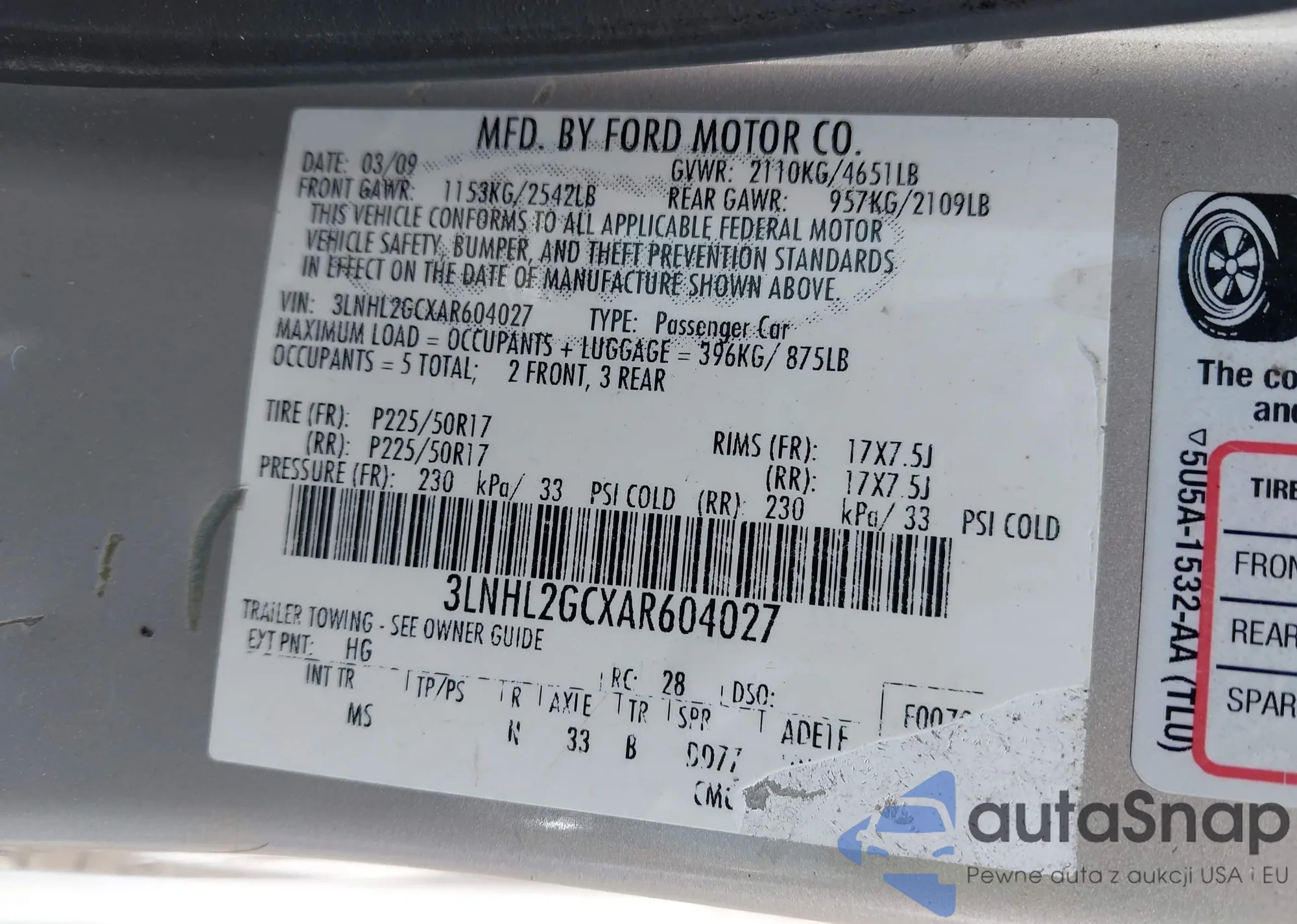 • VIN 3LNHL2GCXAR604027