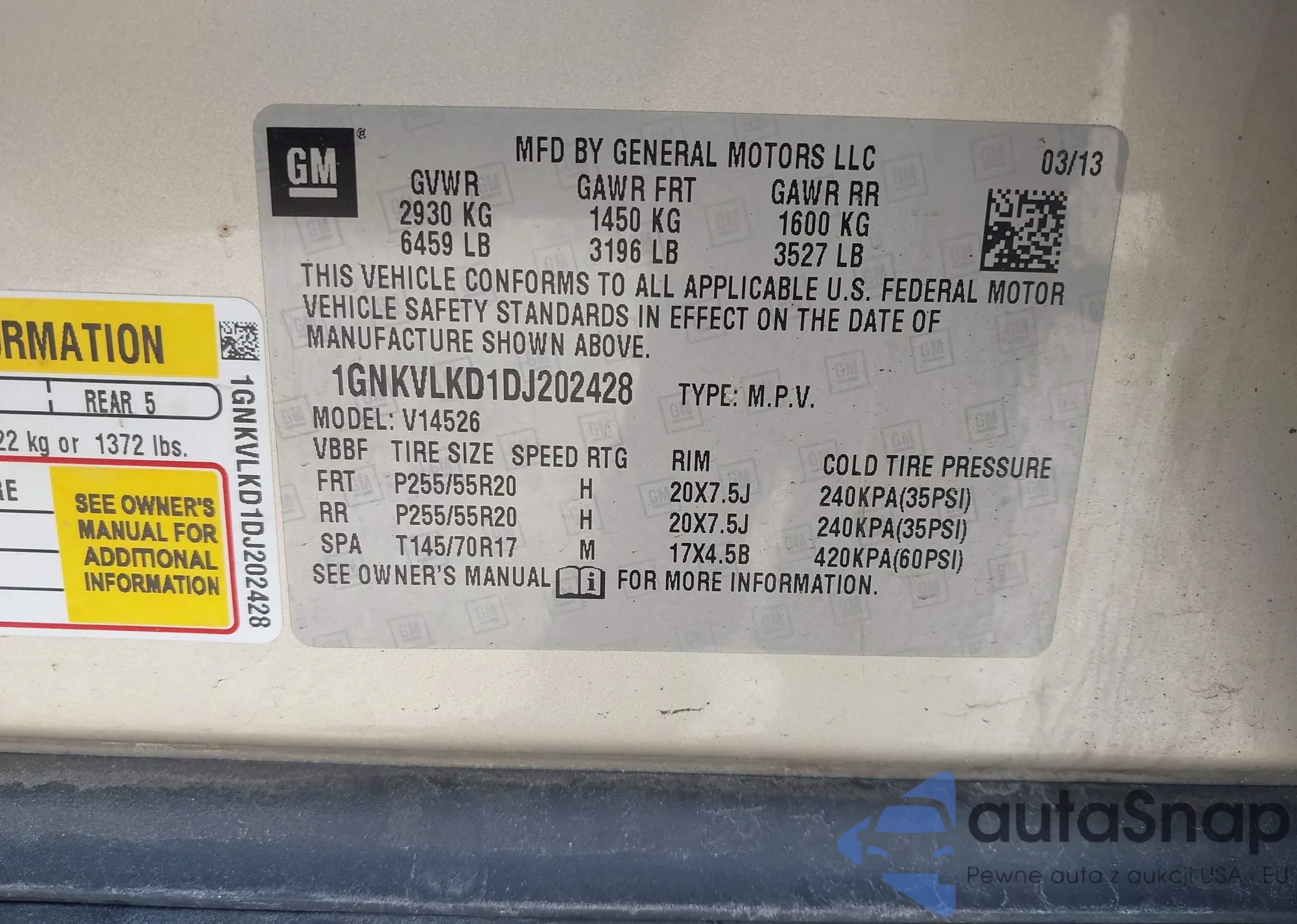 LOT: 42134820 VIN: 1GNKVLKD1DJ202428