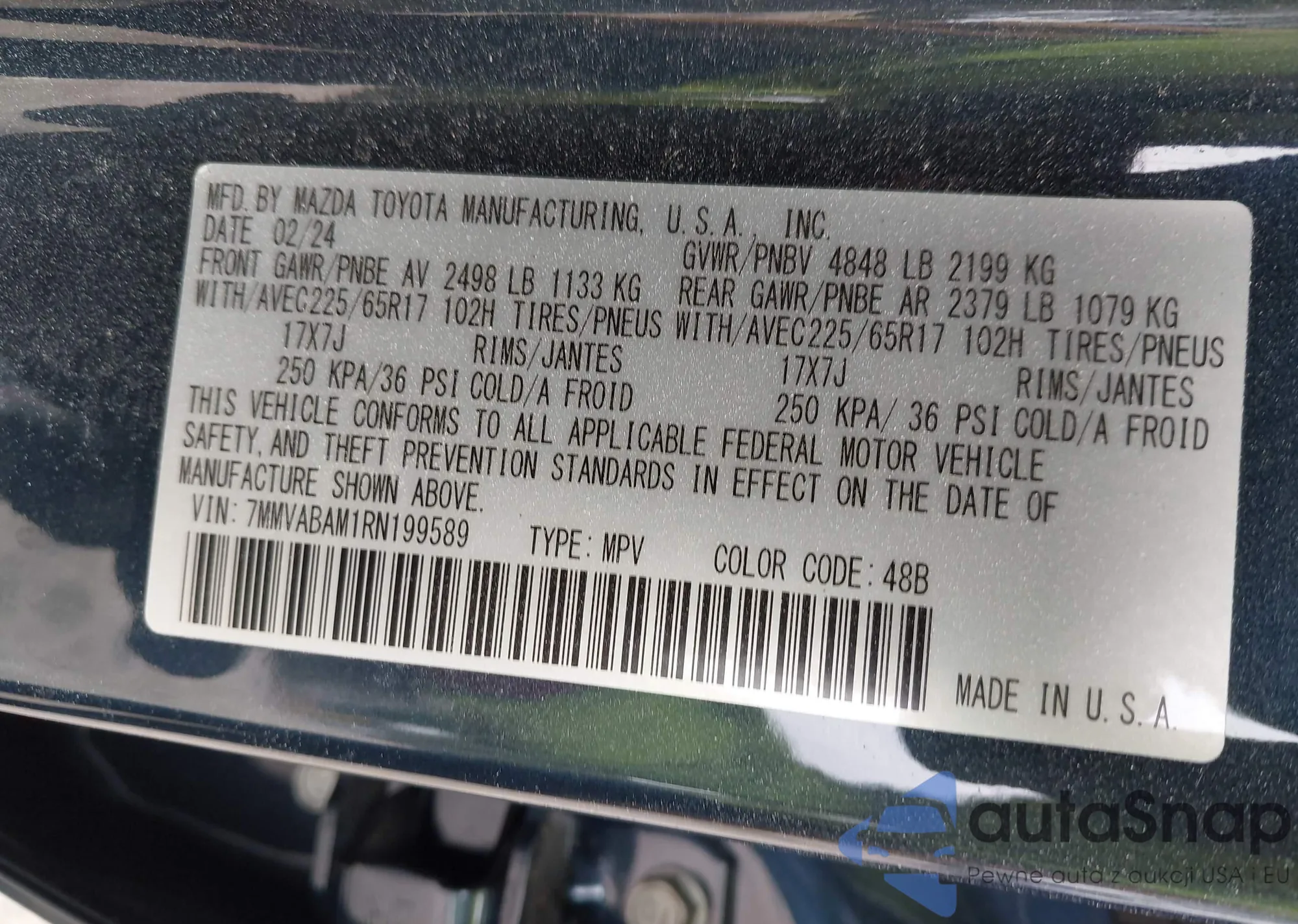 LOT: 42123064 VIN: JM3KFADM3J0365419