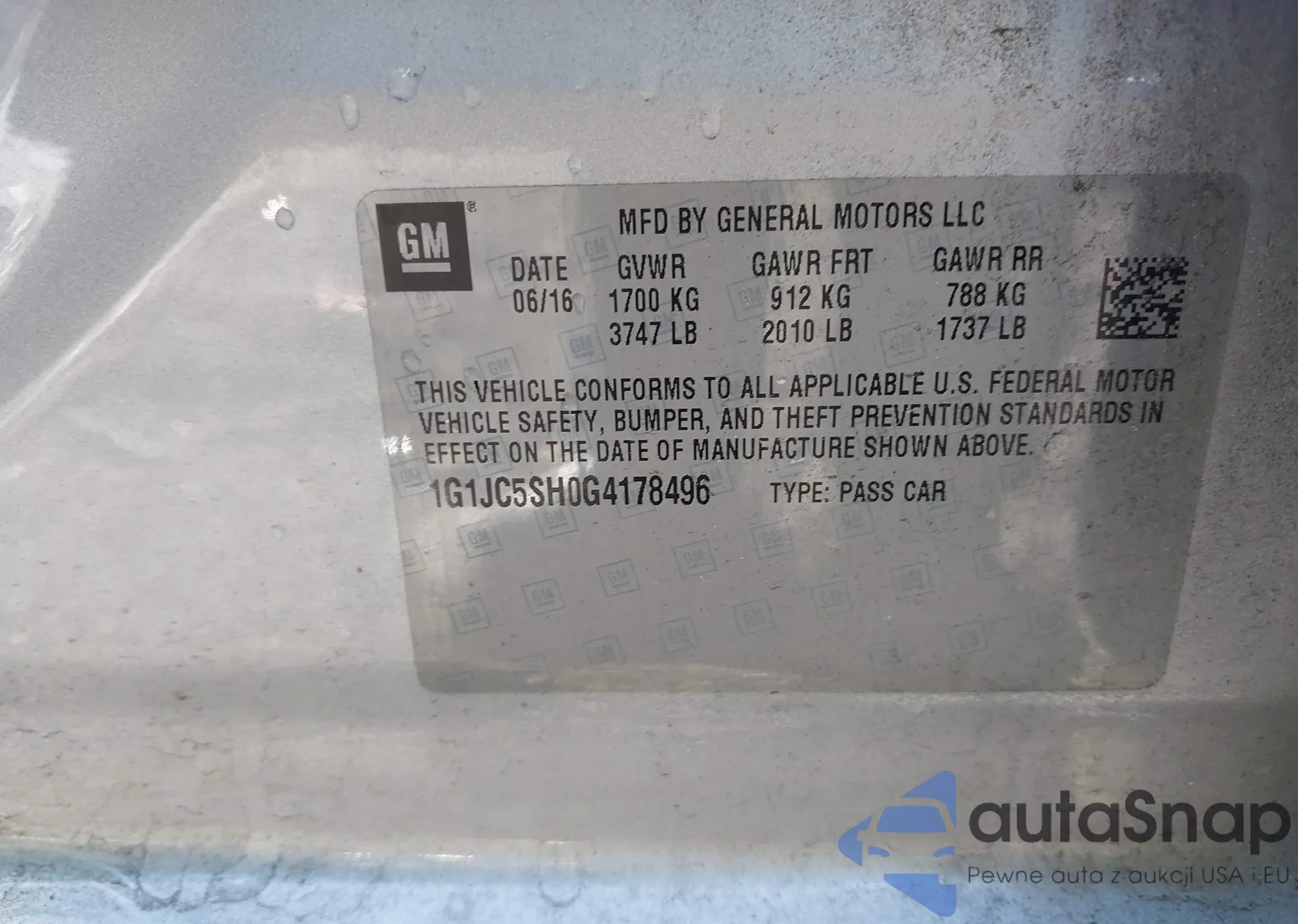 LOT: 42241692 VIN: 1G1JC5SH0G4178496