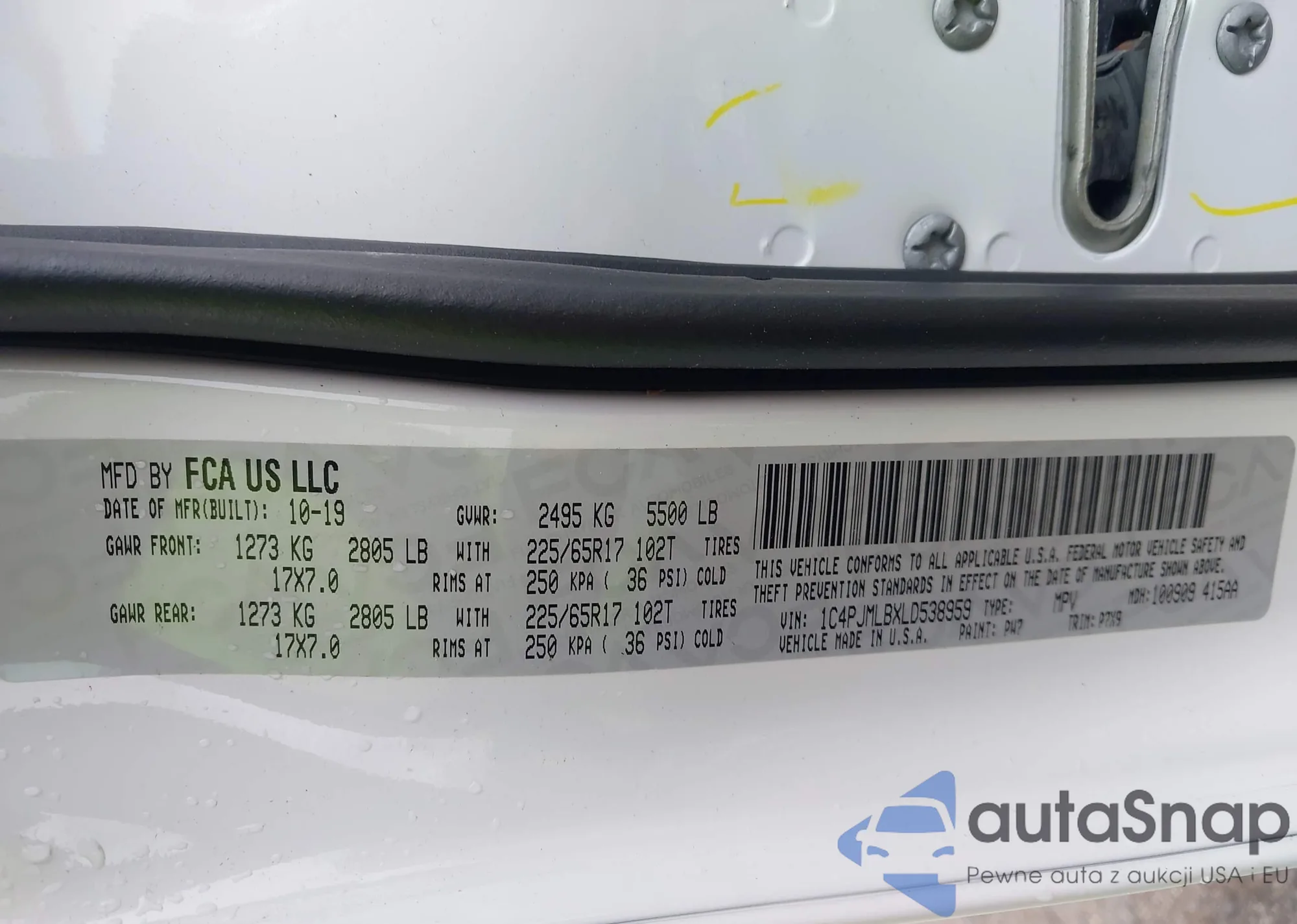 LOT: 42266458 VIN: 1C4PJMLBXLD538959