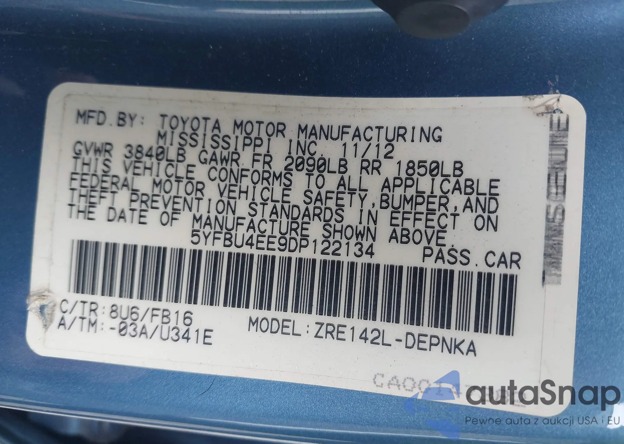 • VIN 5YFBU4EE9DP122134