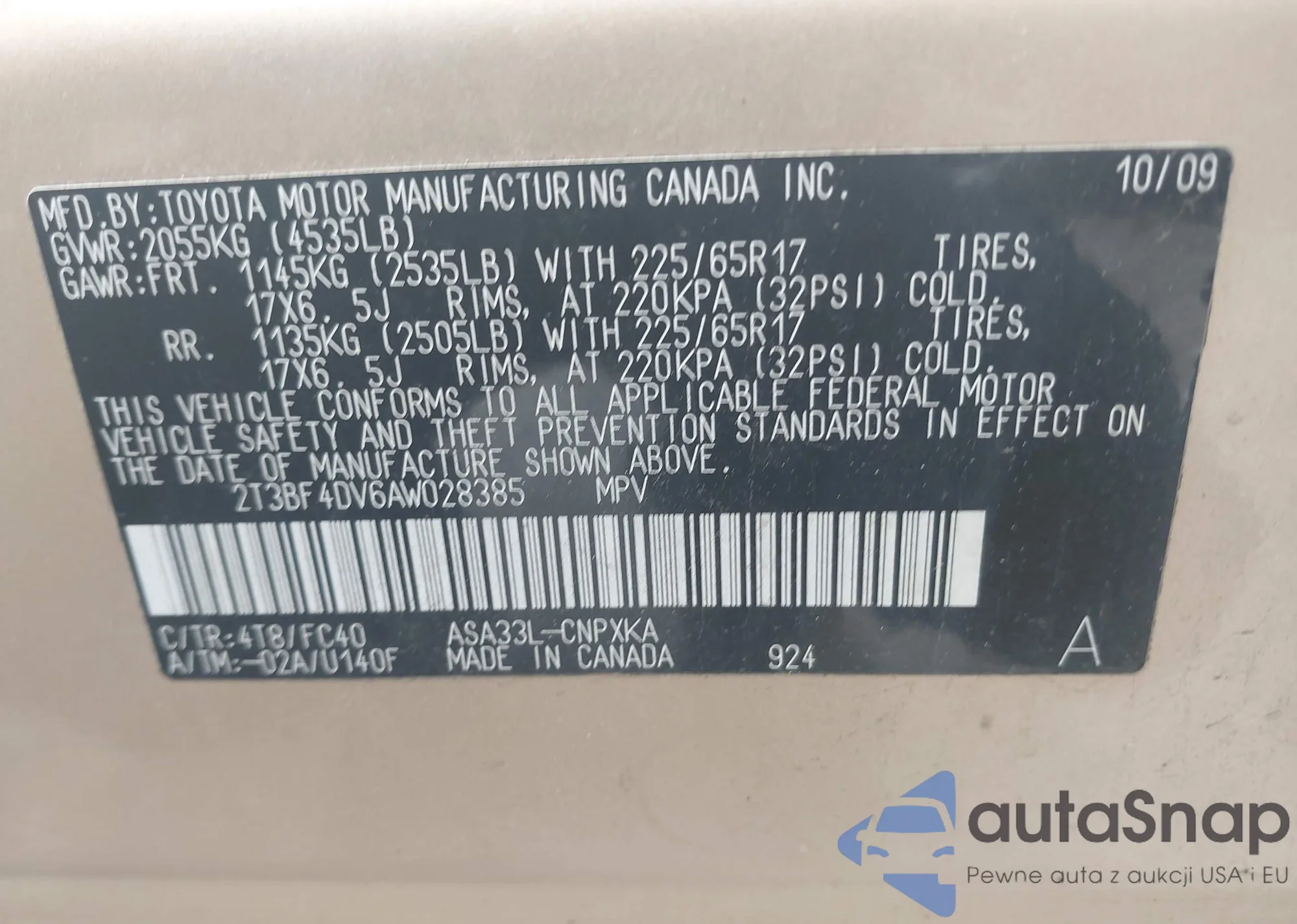• VIN 2T3BF4DV6AW028385