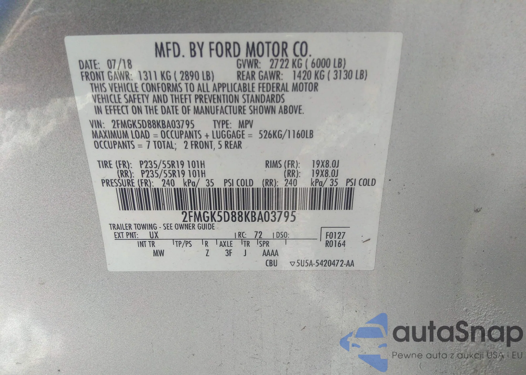 • VIN 2FMGK5D88KBA03795