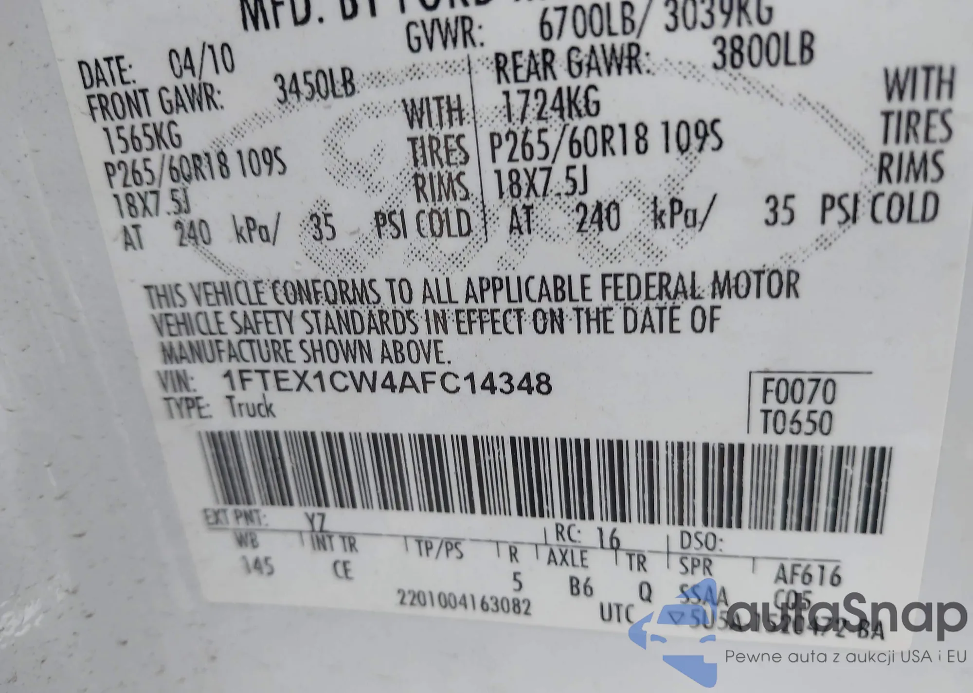 • VIN 1FTEX1CW4AFC14348