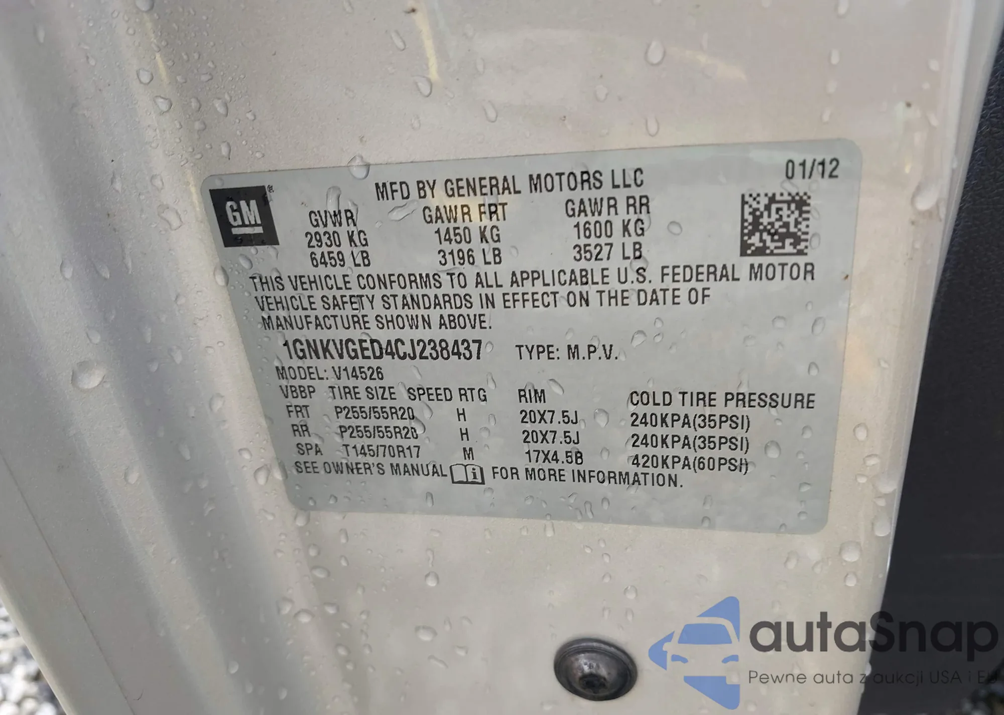 • VIN 1GNKVGED4CJ238437