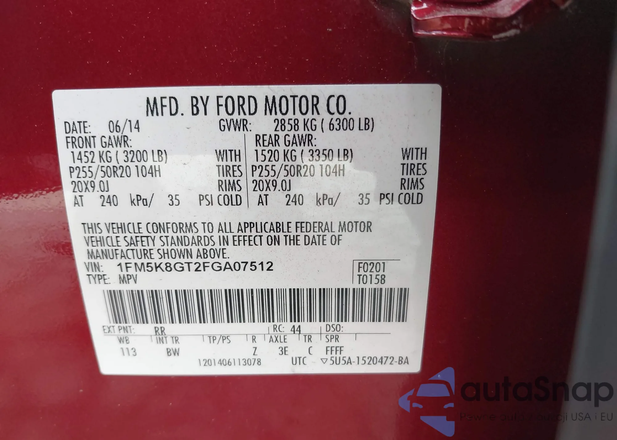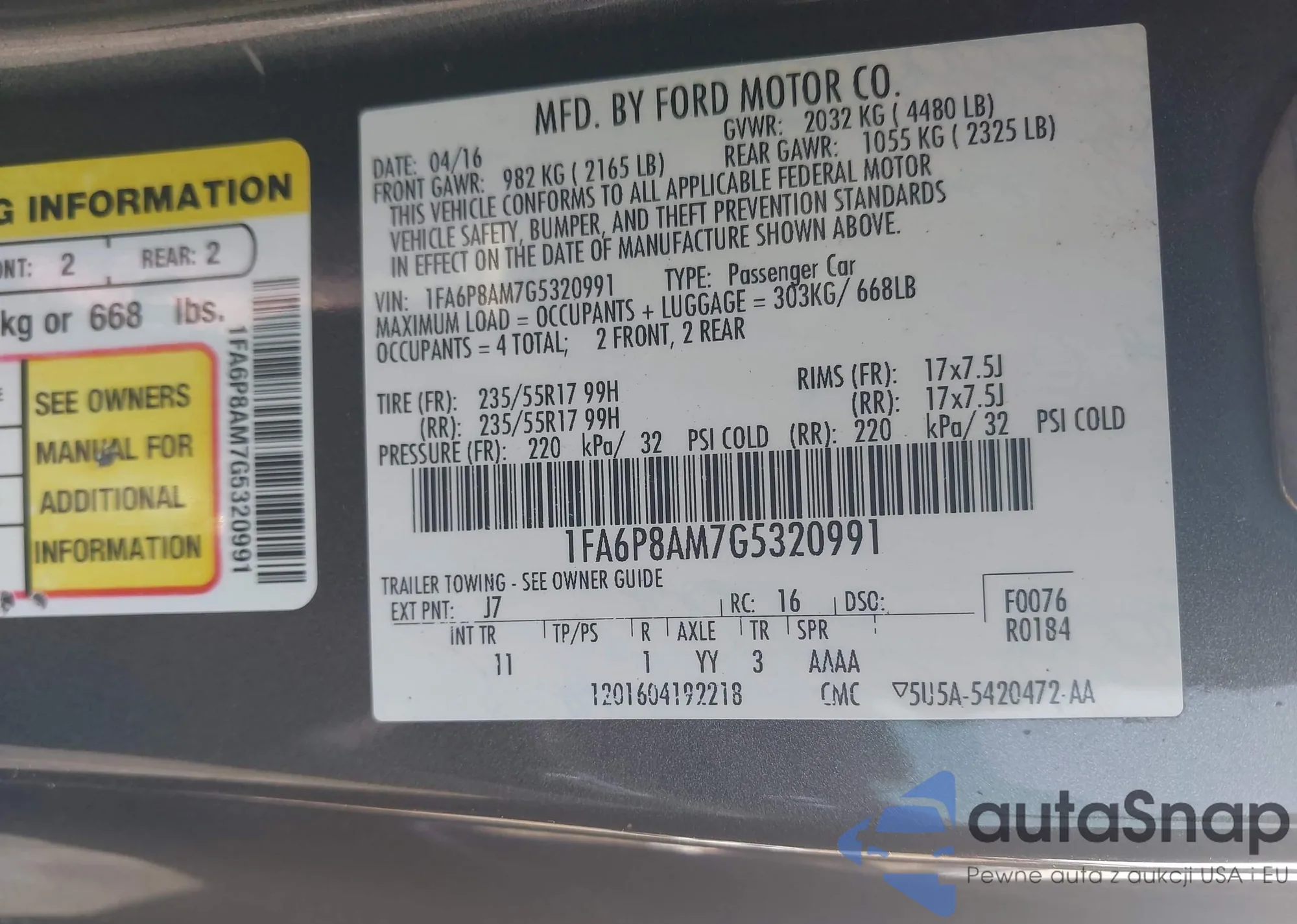 • VIN 1FA6P8AM7G5320991
