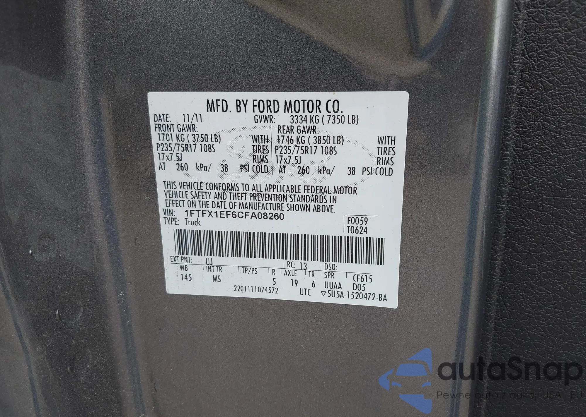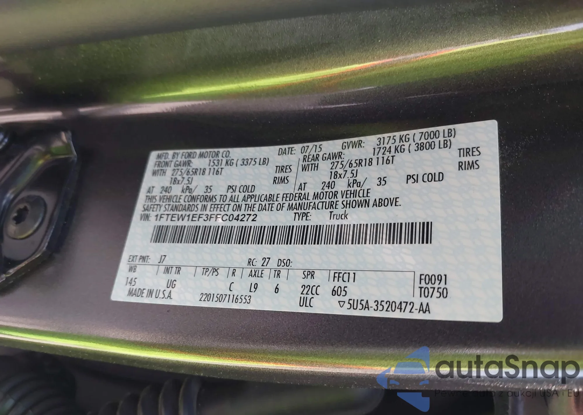 LOT: 42357534 VIN: 1FTEW1EF3FFC04272