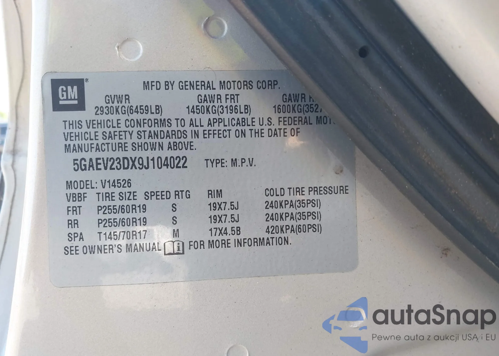 • VIN 5GAEV23DX9J104022