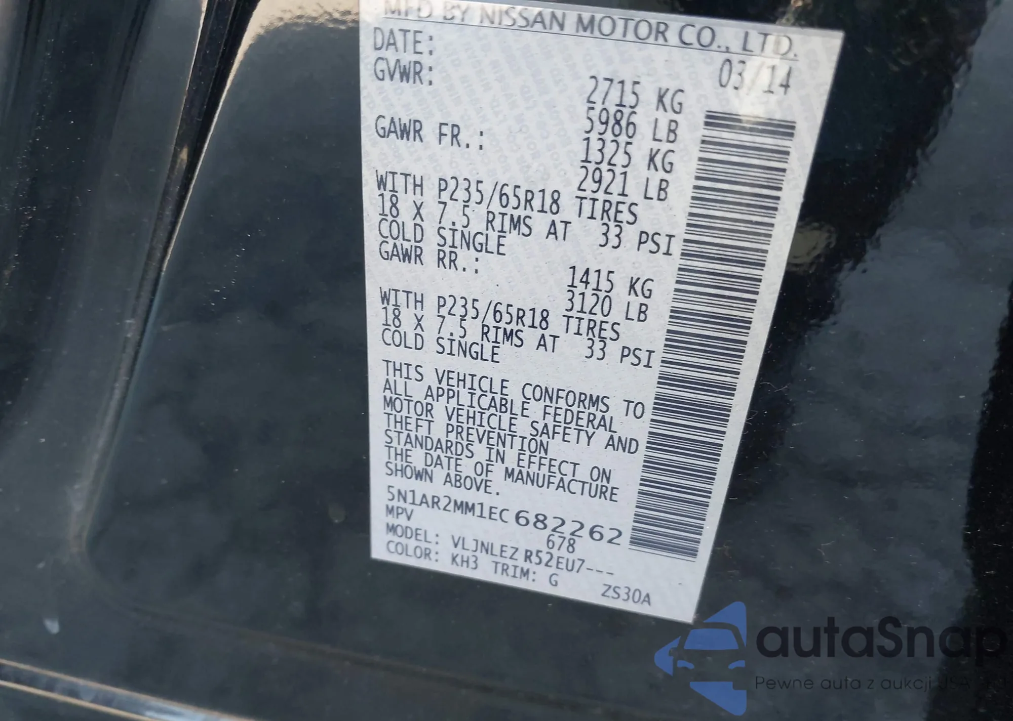 LOT: 42132205 VIN: 5N1AR2MM1EC682262