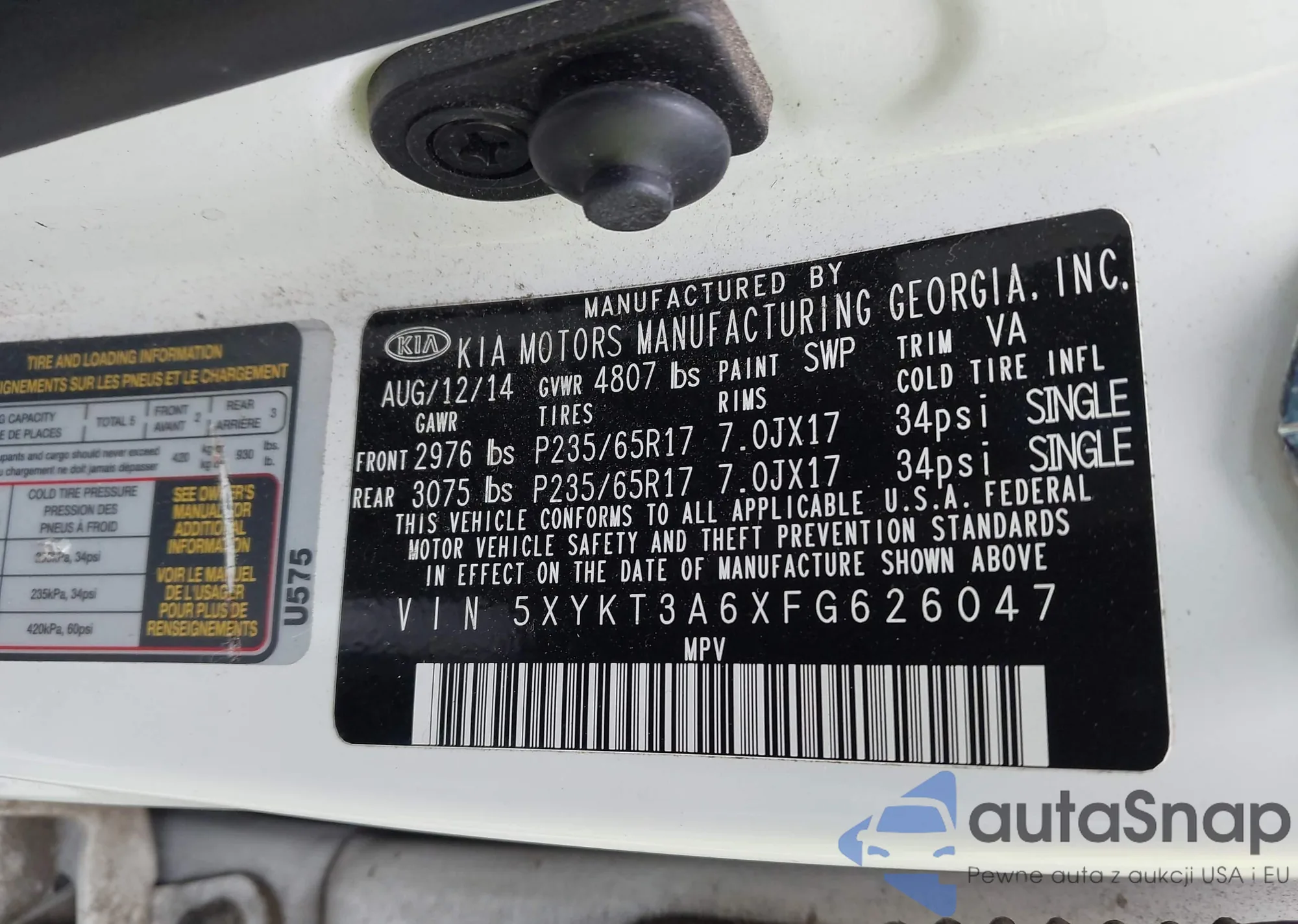 • VIN 5XYKT3A6XFG626047