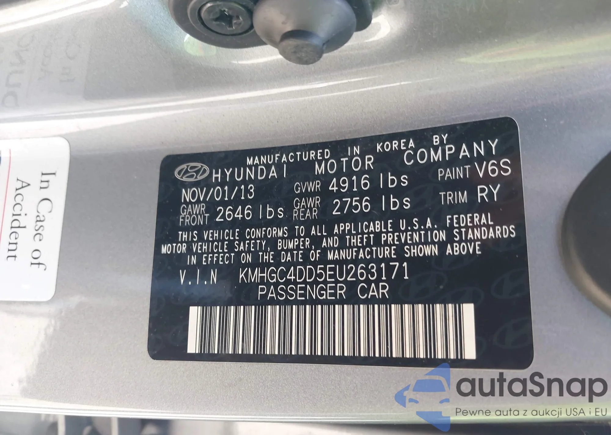 LOT: 42156080 VIN: KMHGC4DD5EU263171