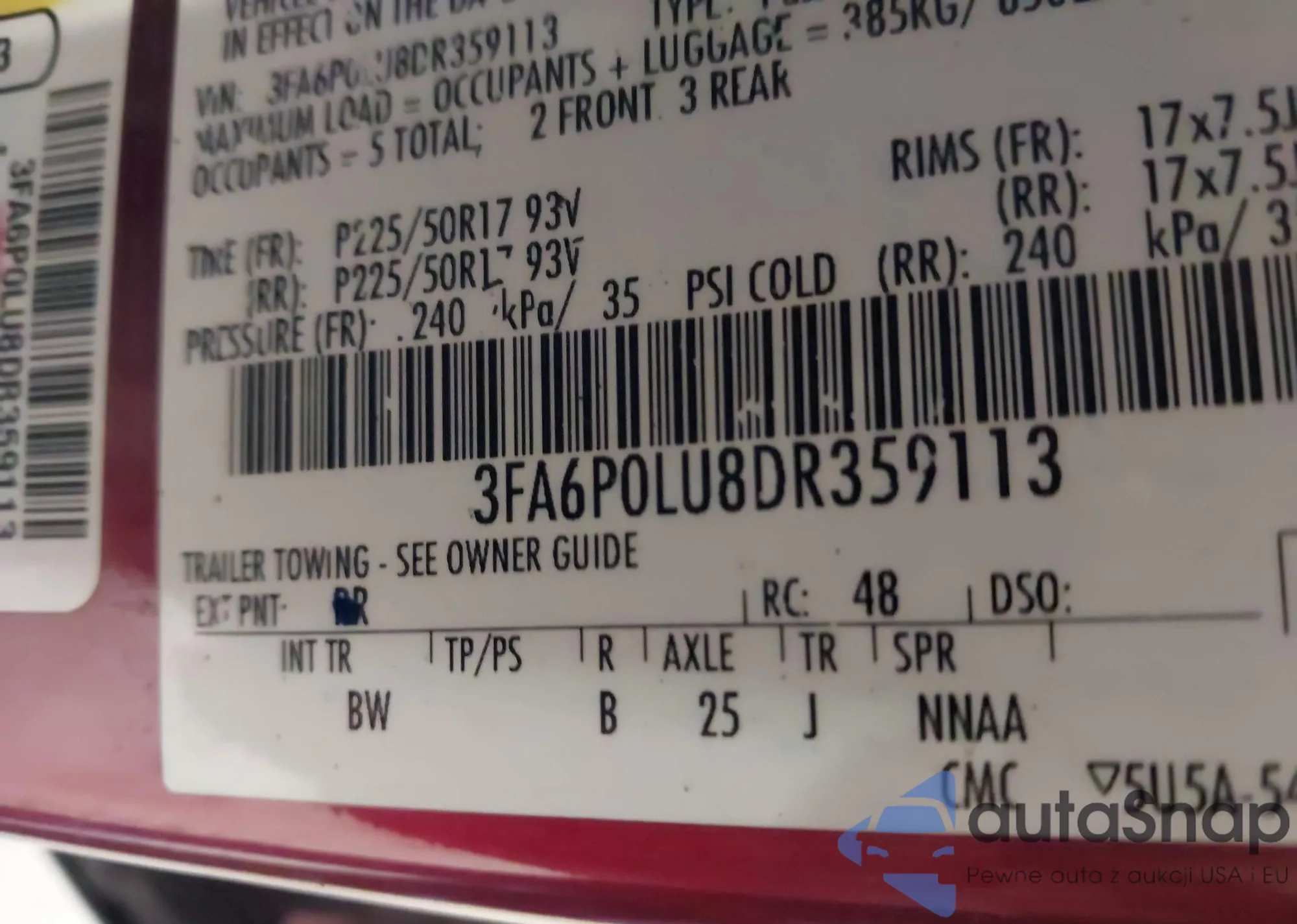 • VIN 3FA6P0LU8DR359113