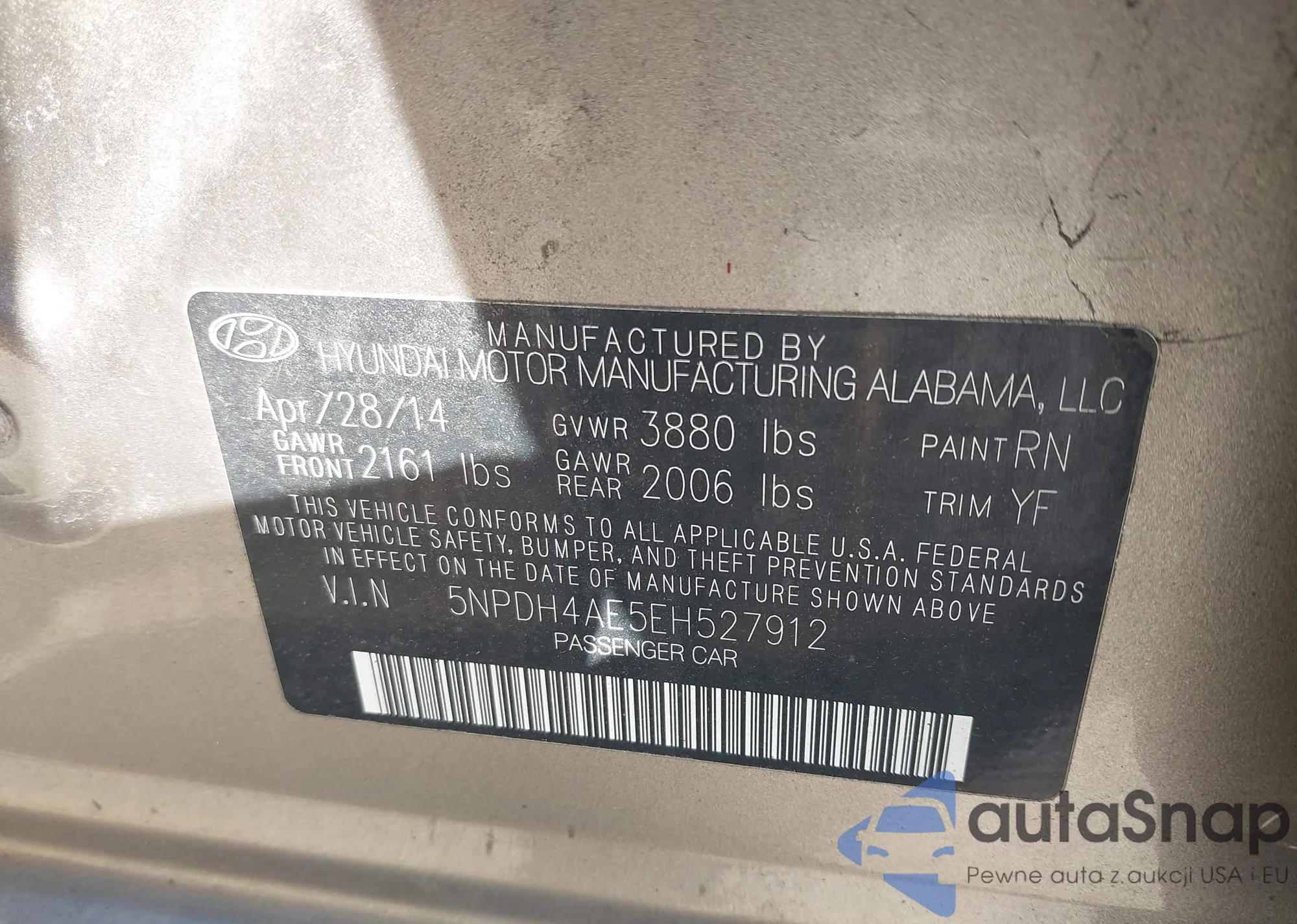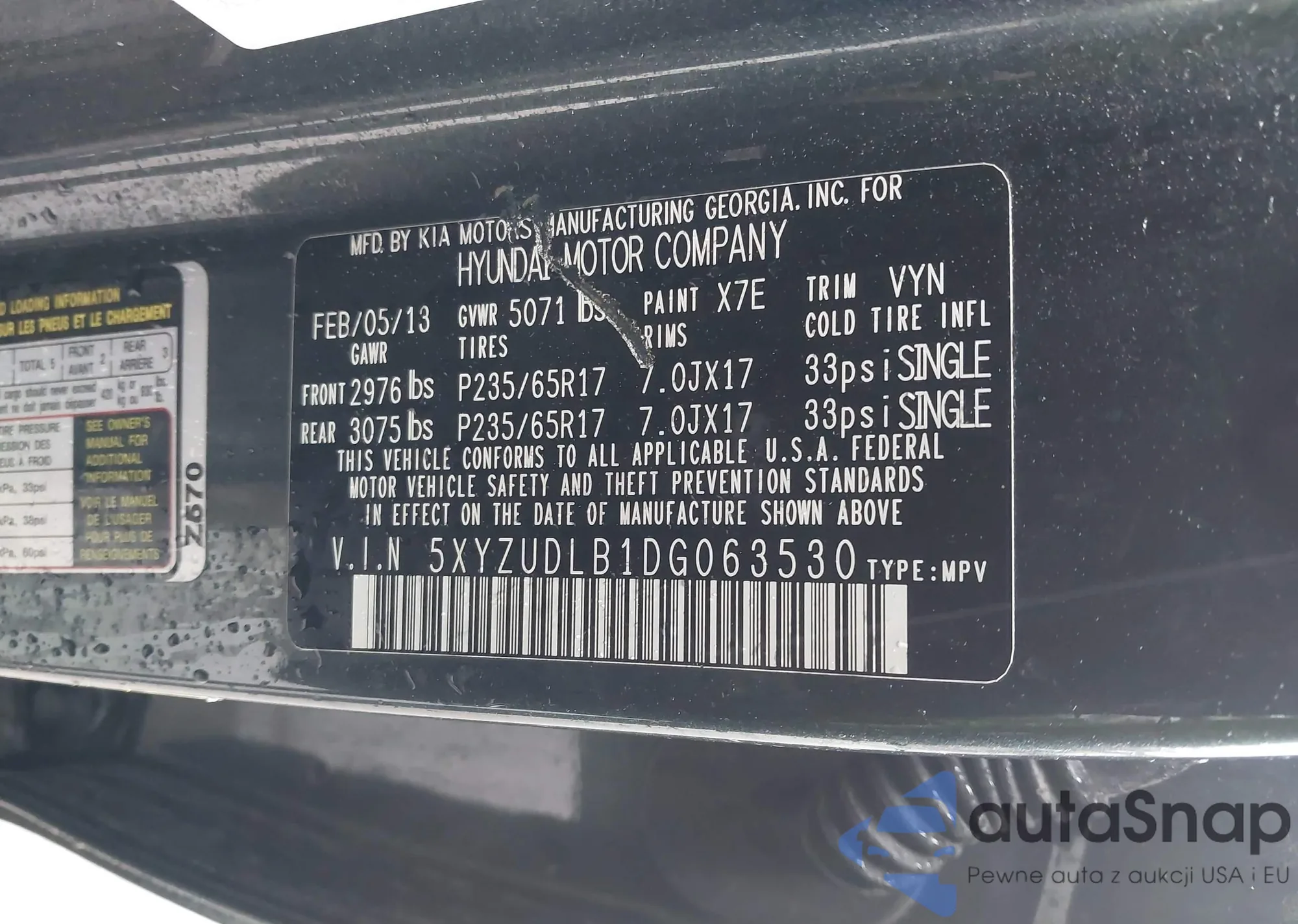 • VIN 5XYZUDLB1DG063530