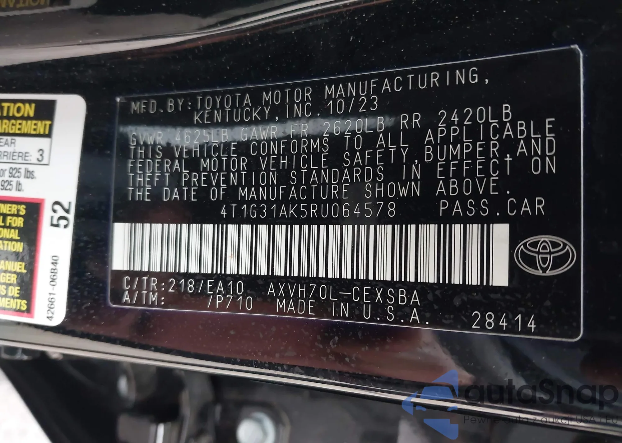 • VIN 4T1G31AK5RU064578