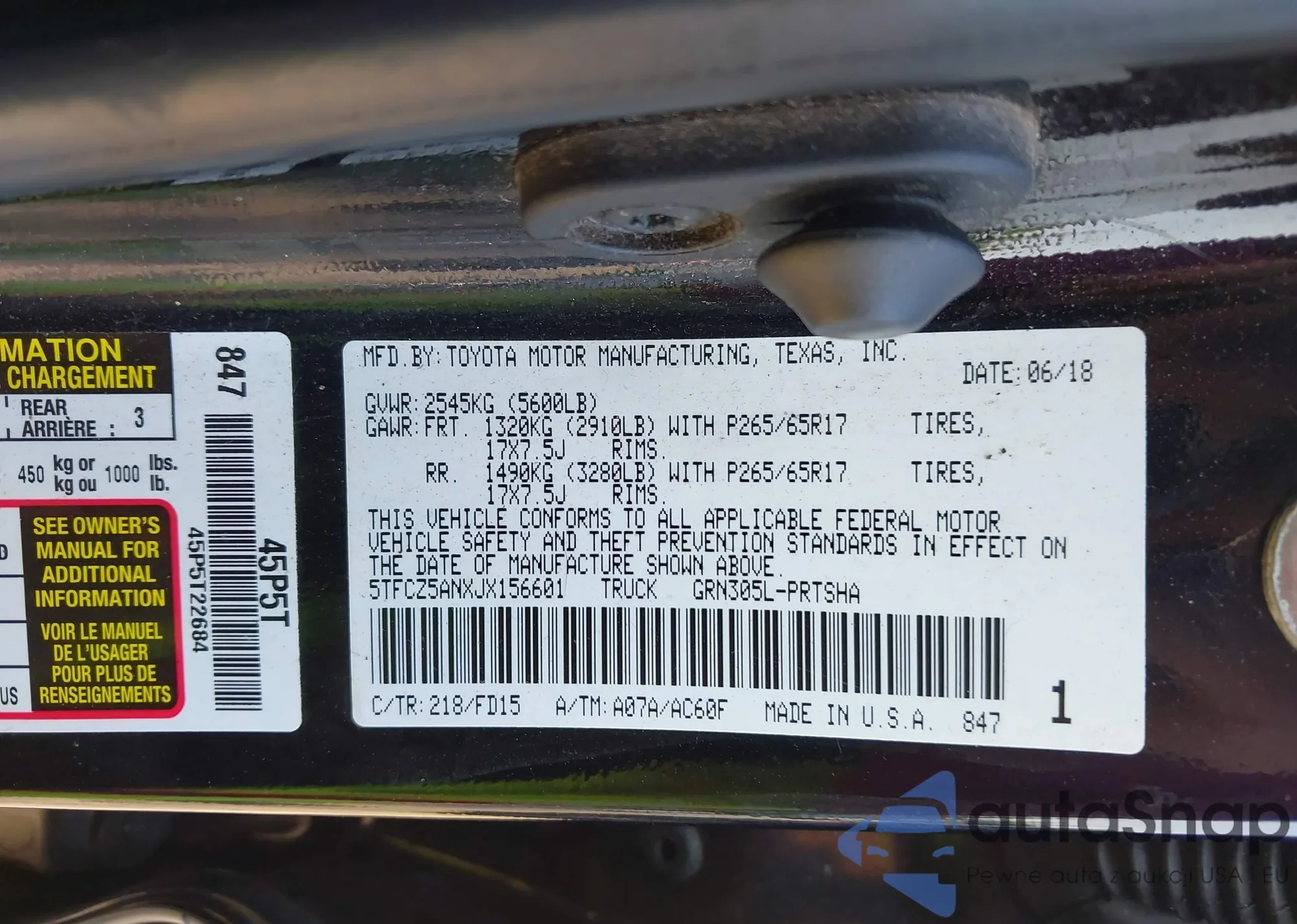 LOT: 42560187 VIN: 5TFCZ5ANXJX156601