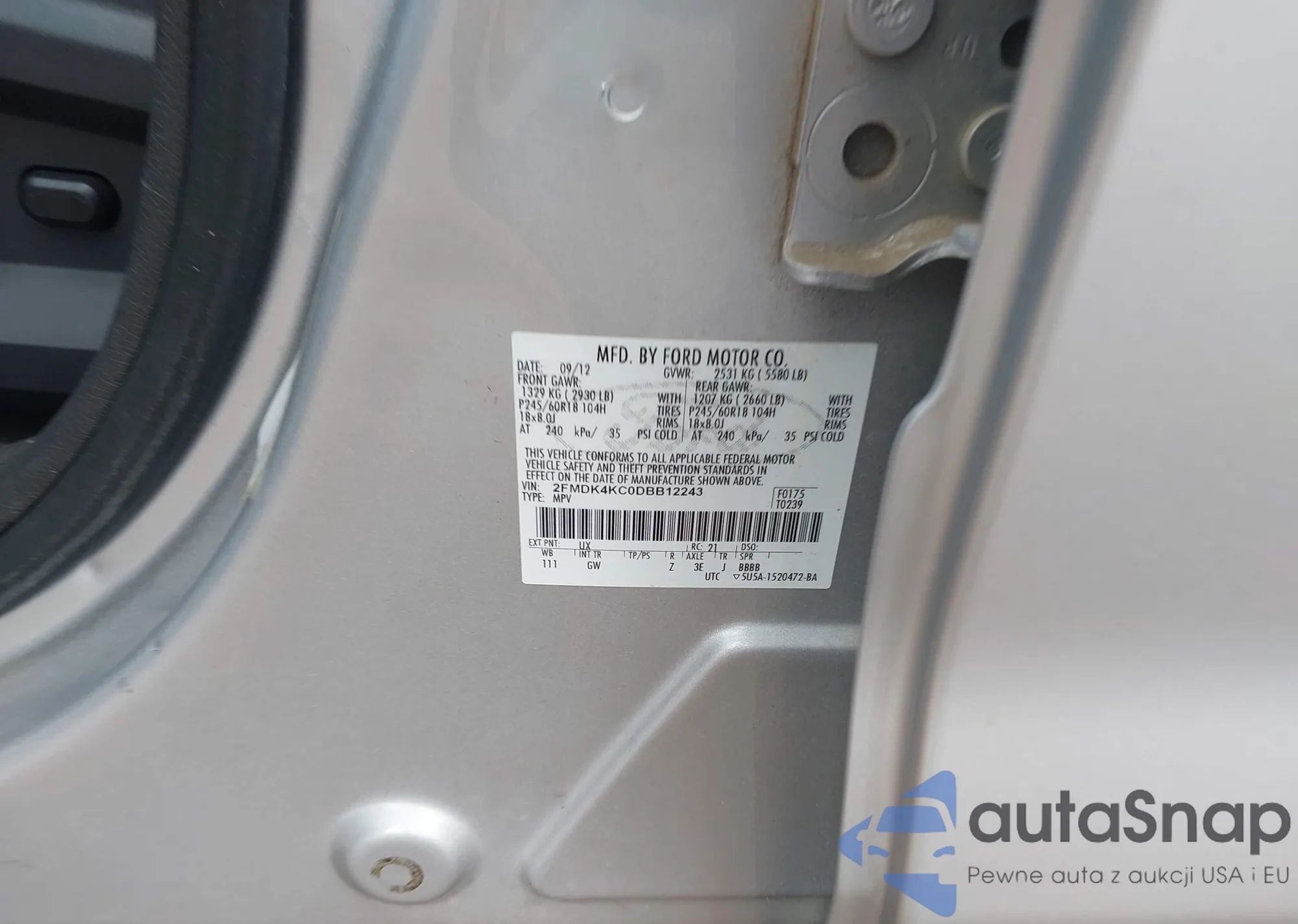 LOT: 42611463 VIN: 2FMDK4KC0DBB12243