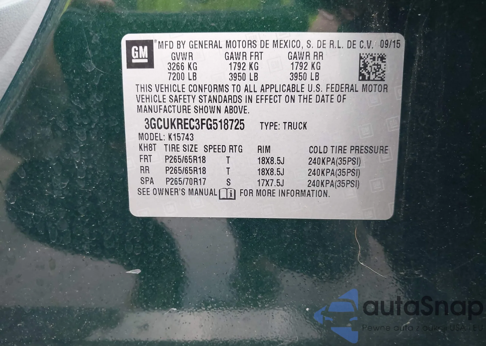 • VIN 3GCUKREC3FG518725