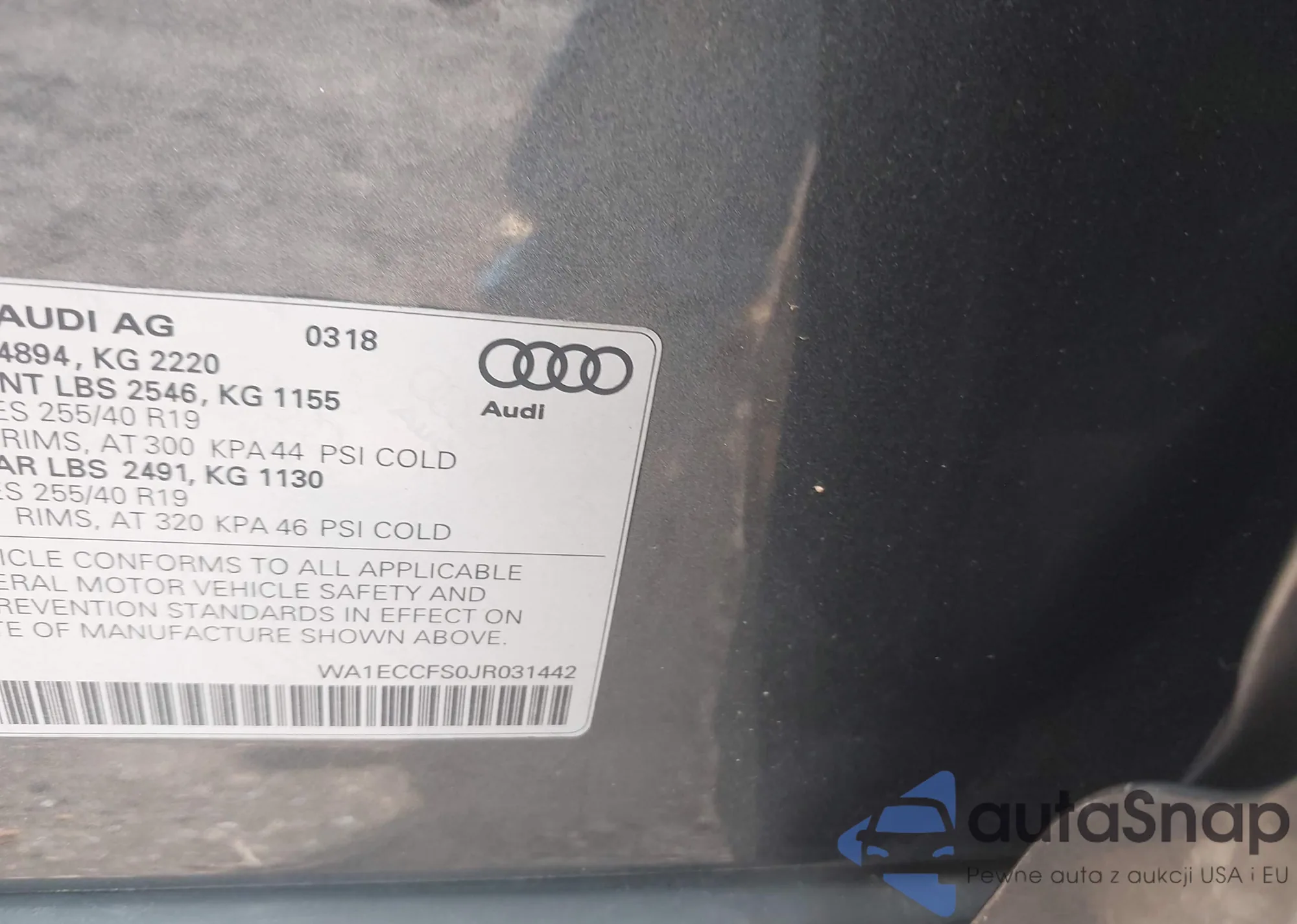 LOT: 42269770 VIN: WA1ECCFS0JR031442